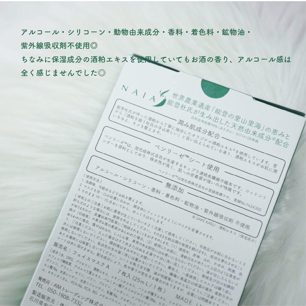 商品詳細情報NAIA 酒粕フェイスマスク 7枚入り(個包装)