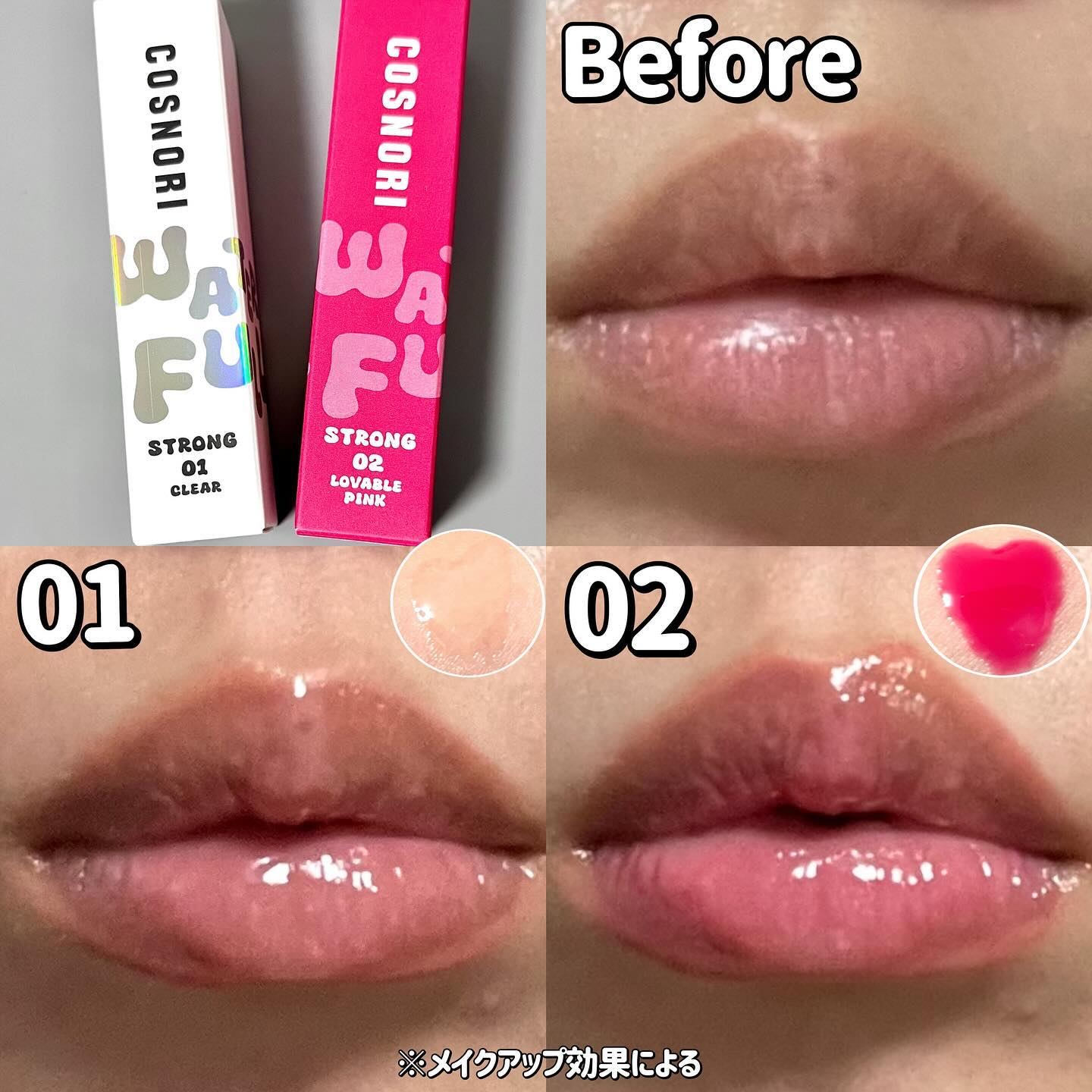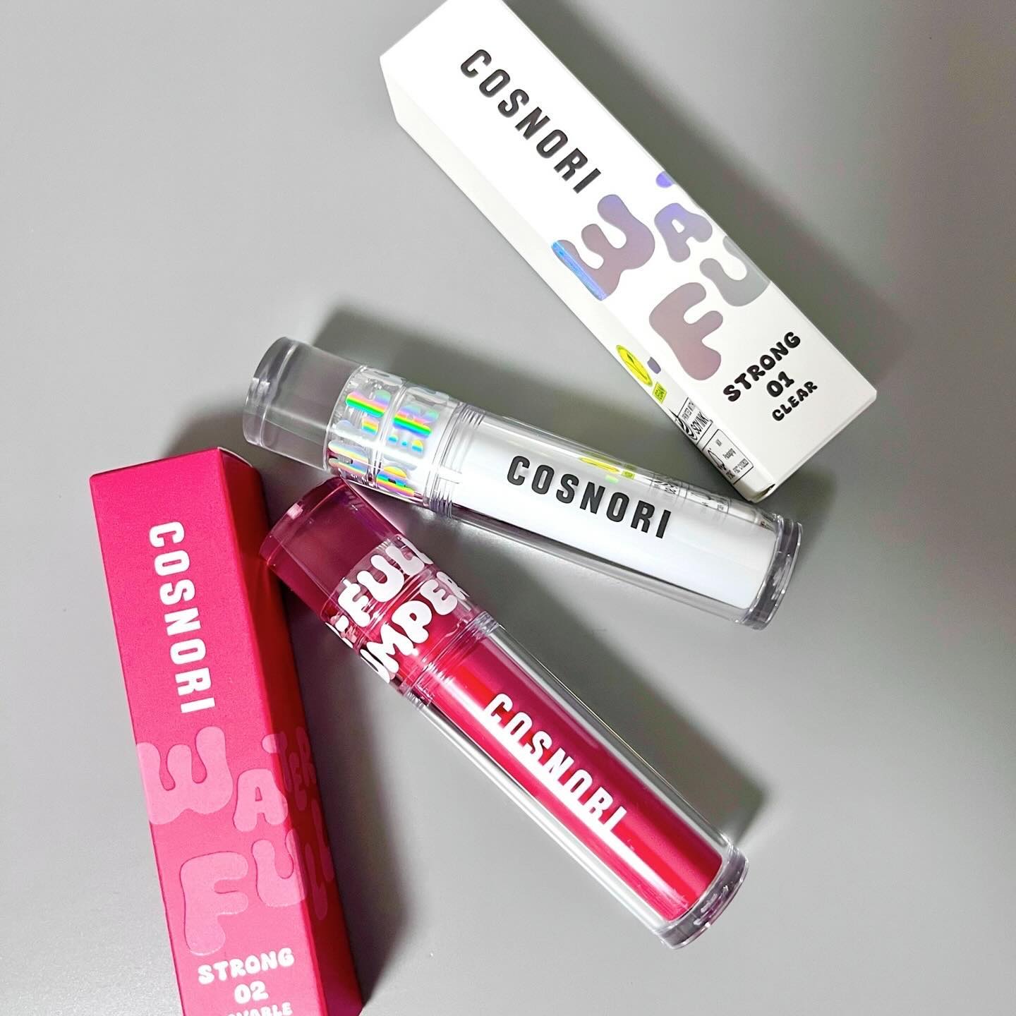 ..▶︎COSNORI ウォーターフルリッププランパー 01Clear 02LOVAVLEPINKまるでヒアルロン酸を注入したかのようなボリューム感に❤️‼︎水分で膨らませるリッププランパー💄⋆*温熱Xクーリングでダブルボリューマイジン効果✨...