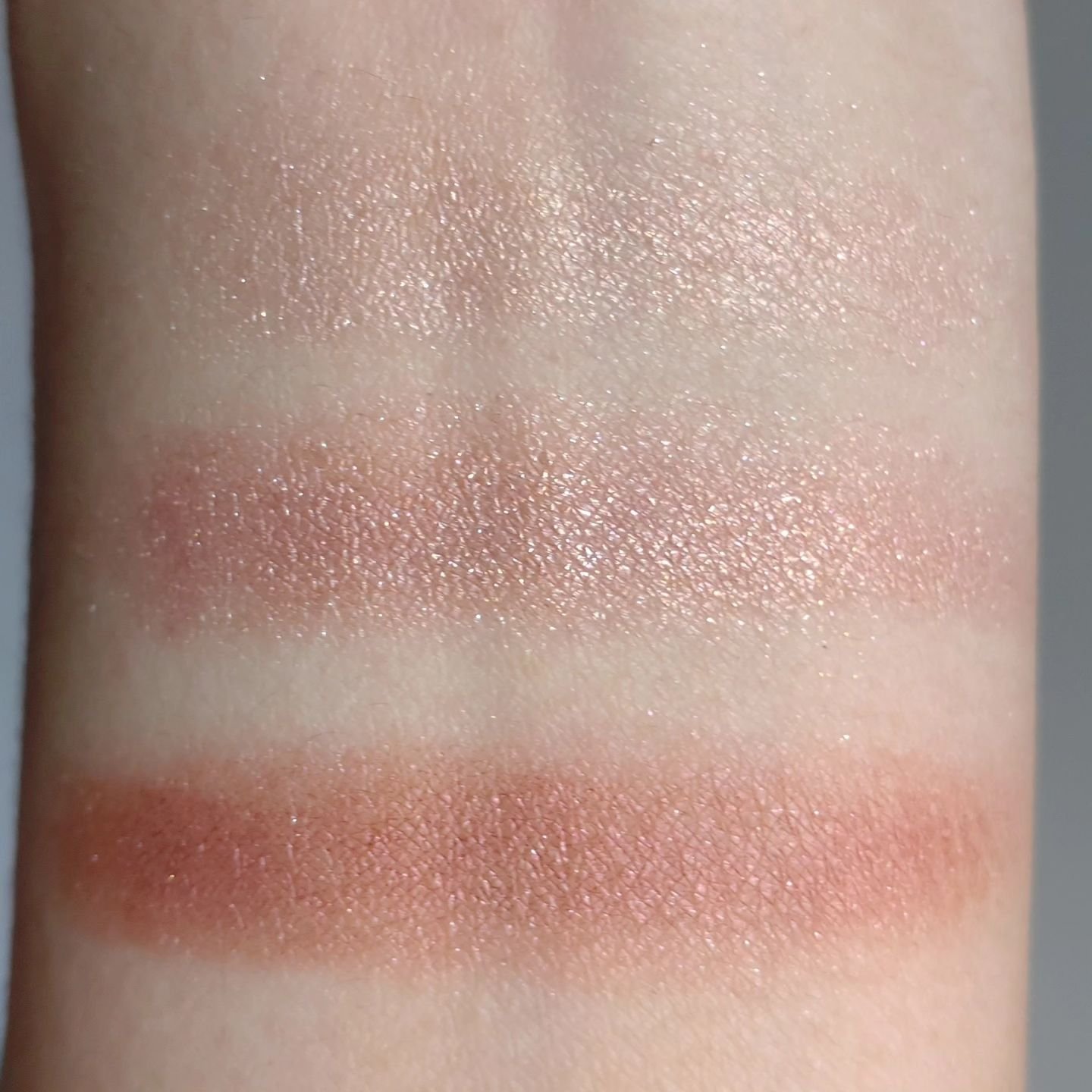 粉質が柔らかできめ細かくマルチなブラウンが使いやすい ほどよいラメ感がデイリーメイクにぴったり 07 サイレントベージュ 王道ブラウンはこちら 赤みや黄みがほんのり入っていて失敗しにくい組み合わせ 08 サンライズオレンジ 明るめだけどブラシでフワッと乗せると肌になじむカラー 左上は見た目ほど黄色が発色しないのでゴールドラメとして使えます
