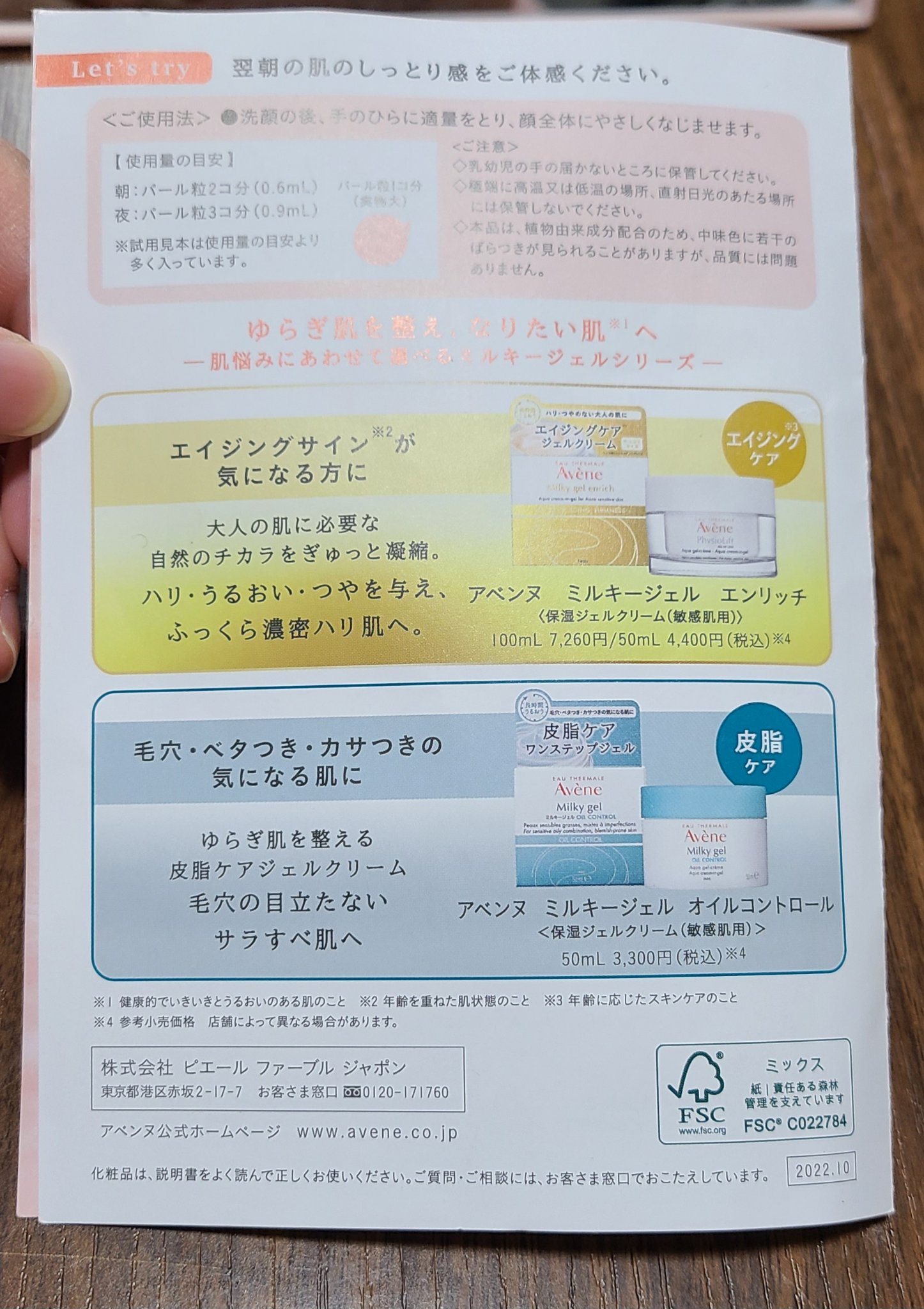 アベンヌ ミルキージェル オイルコントロール | 3,300円 |