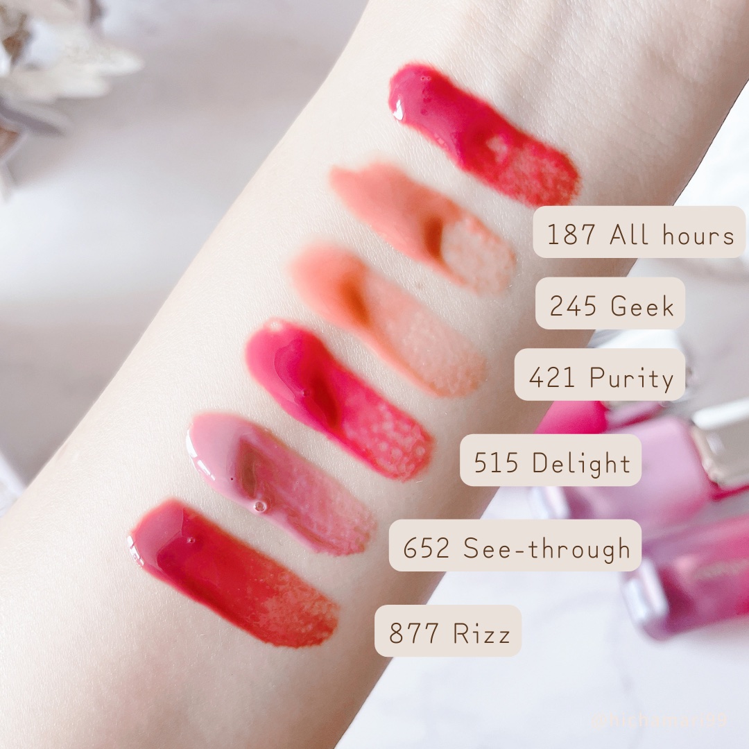 素顔にも自然になじむクリアな発色が魅力的✨ オイルティントならではの軽やかなつけ心地で、使いやすさを実感しました! 風船みたいにふっくらとした光沢感💋 斜めカットのブラシアプリケーターで細かい部分まで塗りやすく、思い通りのリップメイクが楽しめます! ベタつきにくく、快適なつけ心地だったので普段使いにもぴったりです!