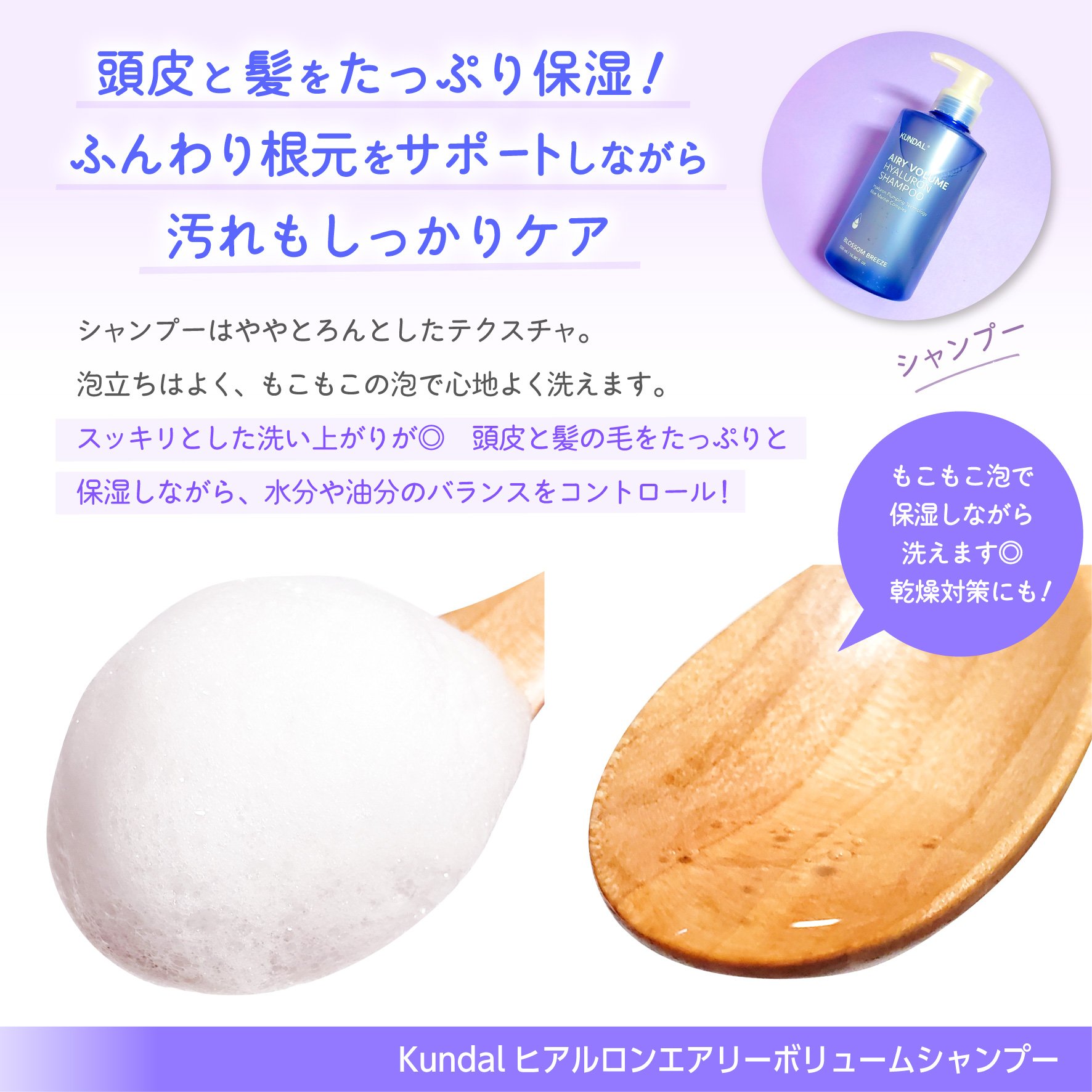 商品詳細情報KUNDAL クンダル エアリーボリュームヒアルロンシャンプー/トリートメント