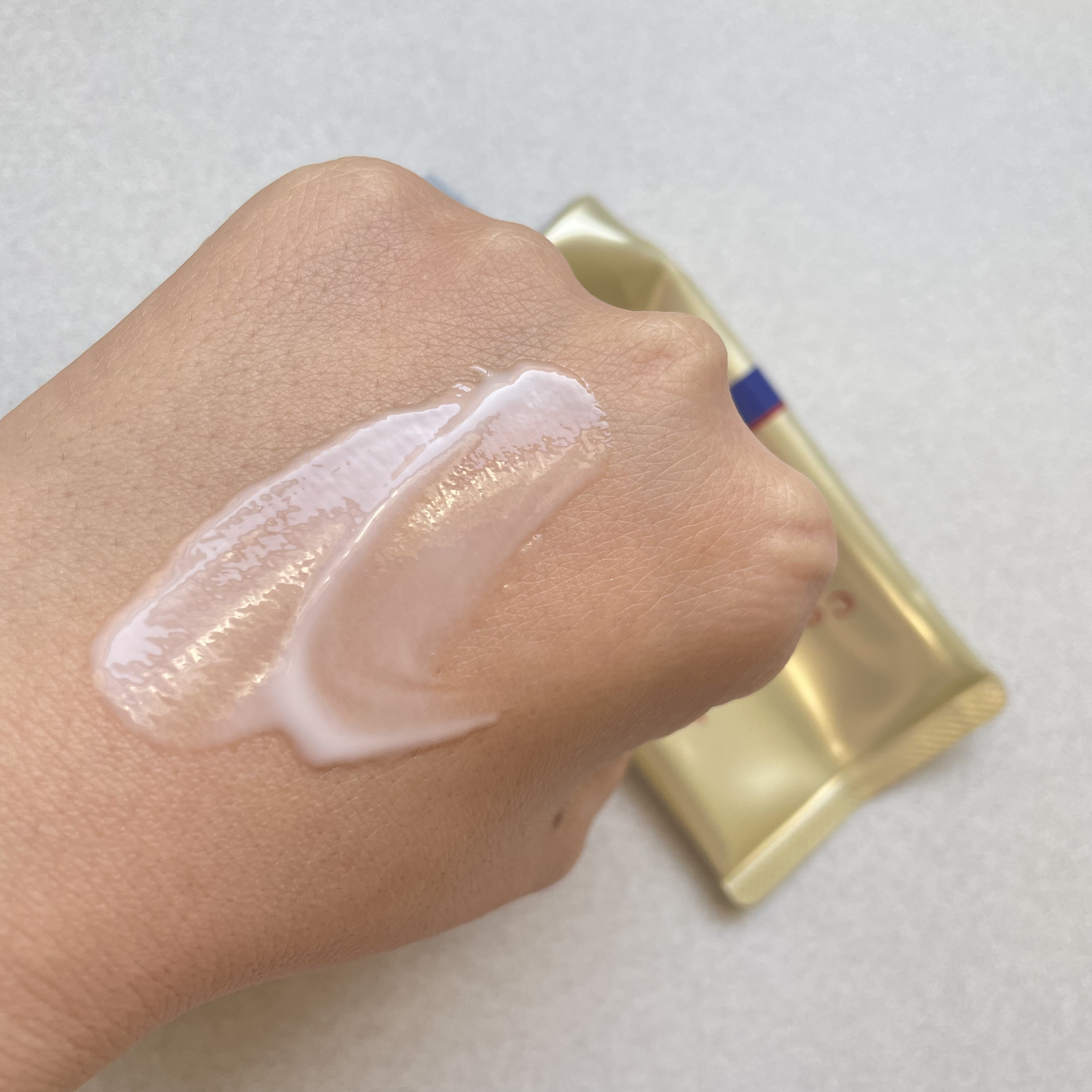 白色の柔らかなクリームで、とても伸びが良く、肌にすーっと流すことができます。 重ねて塗っても白くならないのも◎ モロモロも出にくい! そして、保湿力があるのに、ベタつかないところがすごい! みずみずしい感じで、軽いのにしっかり潤う。