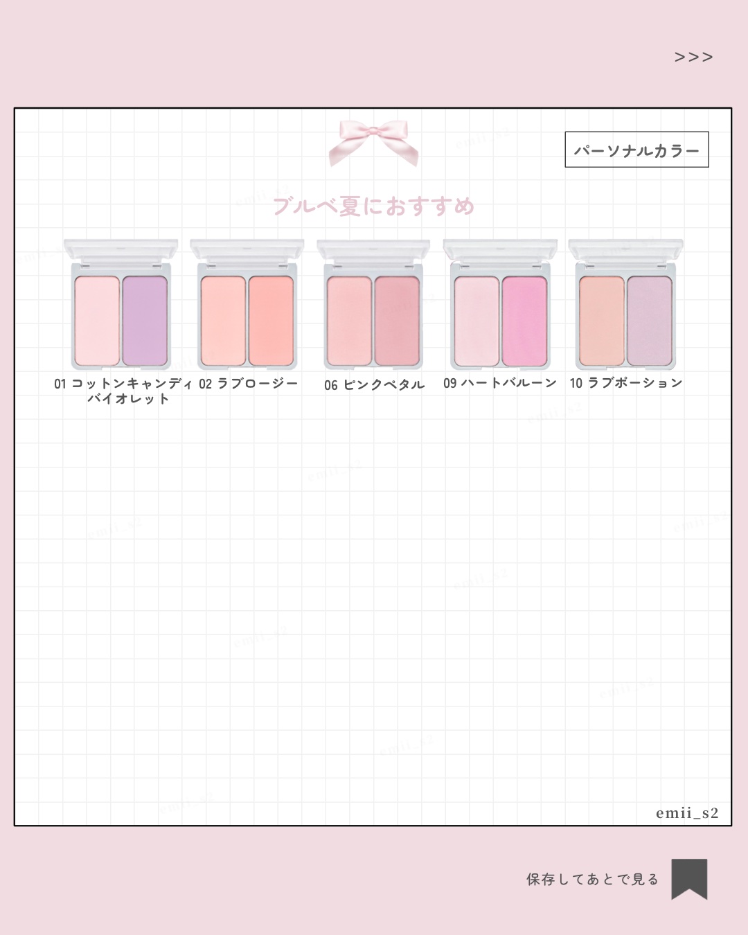 💖🖇2aNデュアルチーク色味メモ01:コットンキャンディバイオレット02:ラブロージー03:コココラール04:ホットリビングコーラル05:ムードインチーク❤︎06:ピンクペタル07:ピーチフィズ08:ヌードヘイズ❤︎❤︎:個...