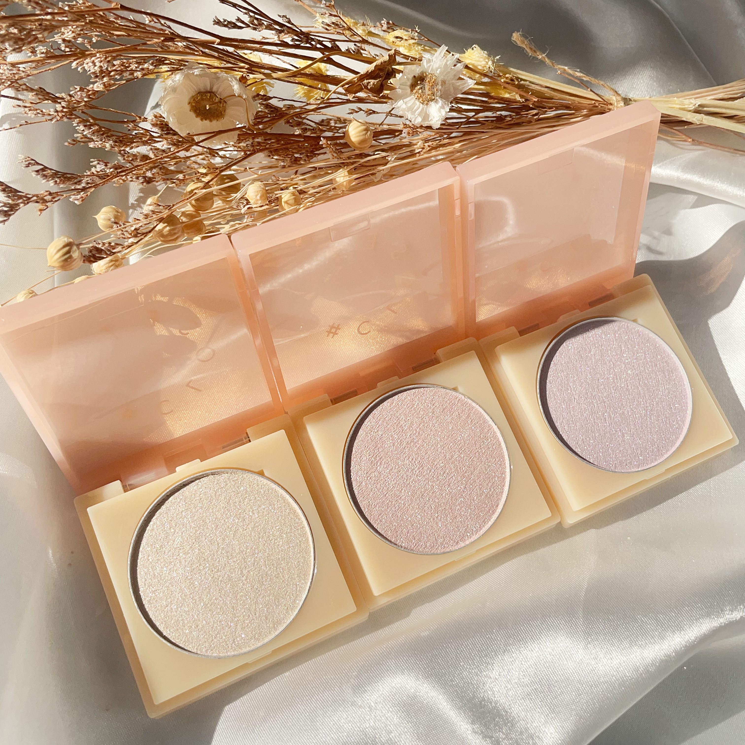数量限定発売の新作ハイライター💫 3色展開で肌色に合わせて選べるよ☺︎ 03はこの中でも一番うるツヤ感&透明感がすごい✨ マットチークに重ねても可愛い! 美容保湿成分もたっぷり配合されていて、さらっとしているのにパウダー感のないなめらかな質感。