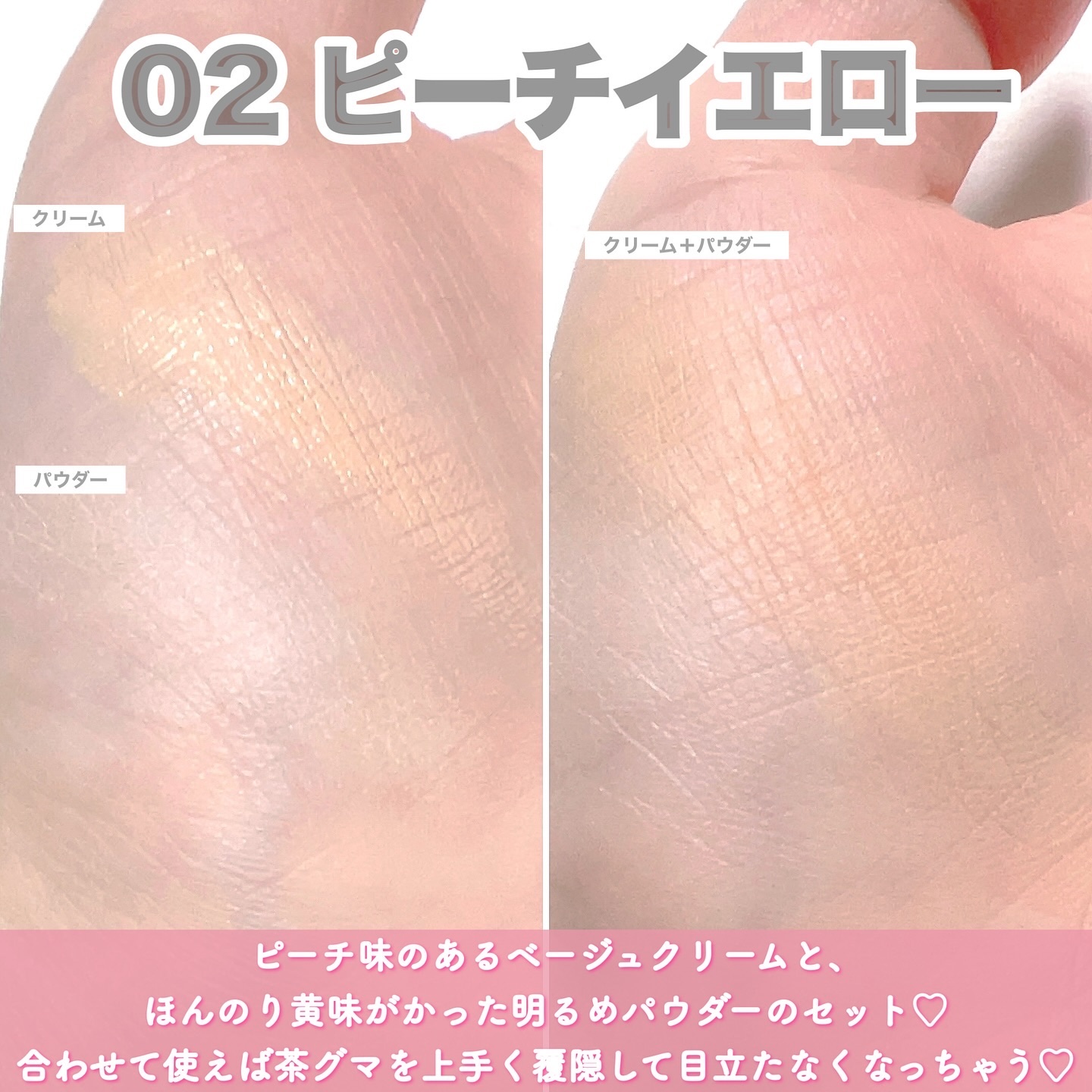 上のクリームコンシーラーを手持ちのブラシでのせてトントン馴染ませてから、下のパウダーを付属の扇型ブラシでふんわりのせると目元をパッと明るく見せてくれて涙袋も強調してくれるの本当に感動した...!! 涙袋のベースにも◎ 目元のクマやくすみが気になる方に🥺✨ 11/15~new🪄 ぜひ気になった方は、チェックしてみてください🫶🏻️💓