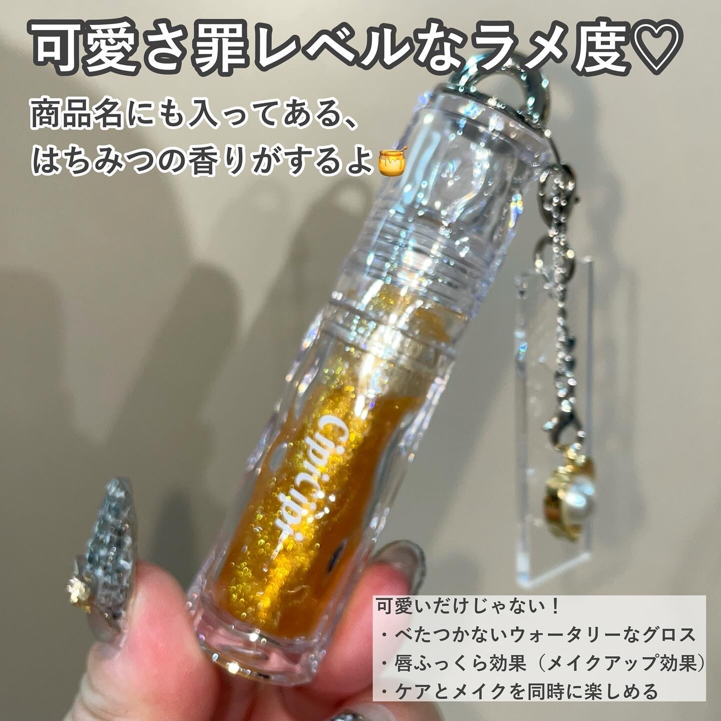 大人気CipiCipiのガラスプランパーからホリデーにピッタリな限定色が登場🎄💛 見た目も中身もキラッキラすぎてテンションぶち上げ✨ クリアな発色のゴールドベースに、チラチラ光るゴールドパールをリッチに配合💛 ほのかにはちみつの香りもするよ🍯🐝 限定カラーの発売を記念した期間限定のポップアップストアが開催中❣️