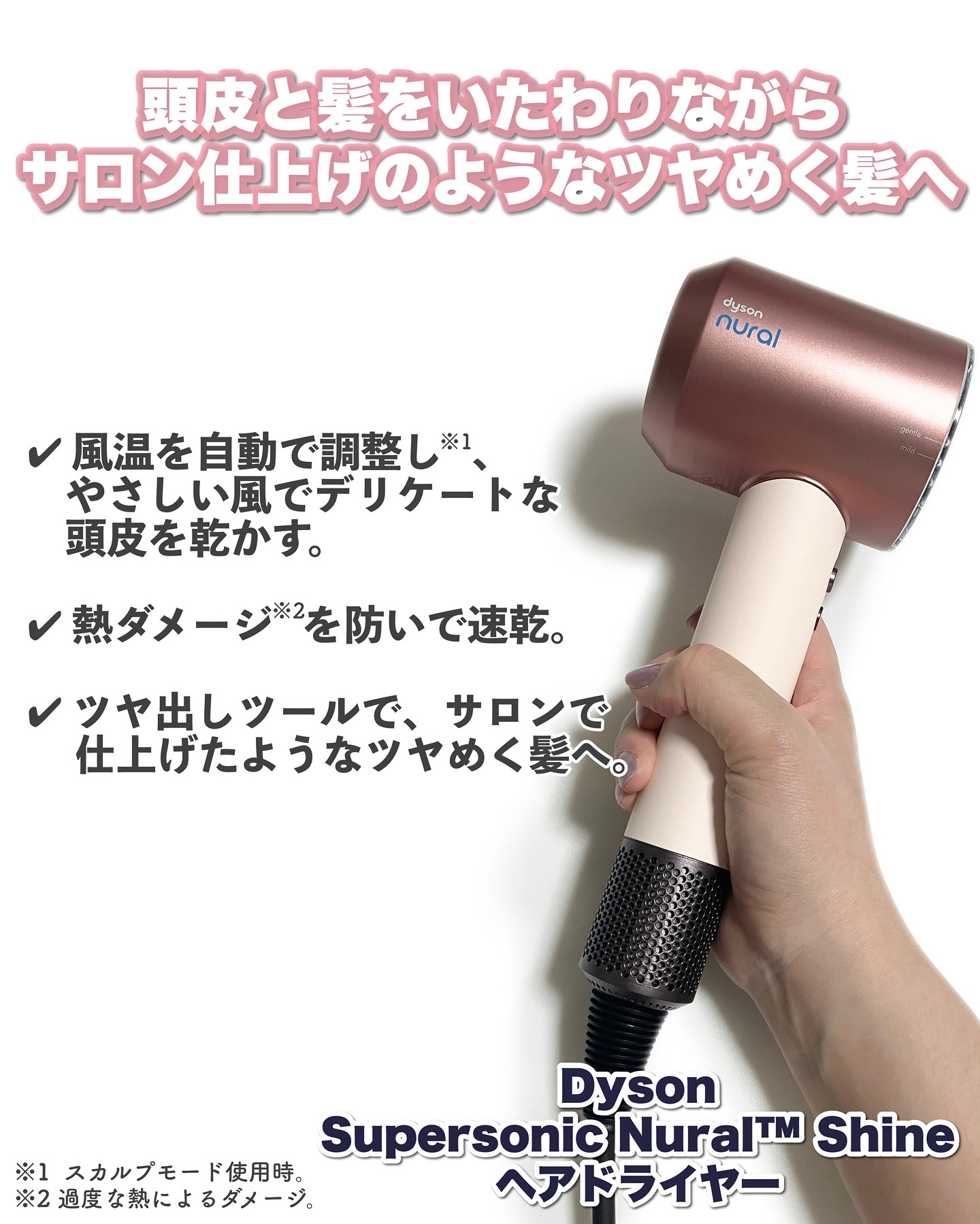 ❁。.*・゚ .゚・*.❁。.*・٭•。❁。.*・٭•。DysonSupersonicNural™Shineヘアドライヤー❁。.*・゚ .゚・*.❁。.*・٭•。❁。.*・٭•。スカルプモードを🔛すると髪との距離を測定して風温を自動で調整し乾...