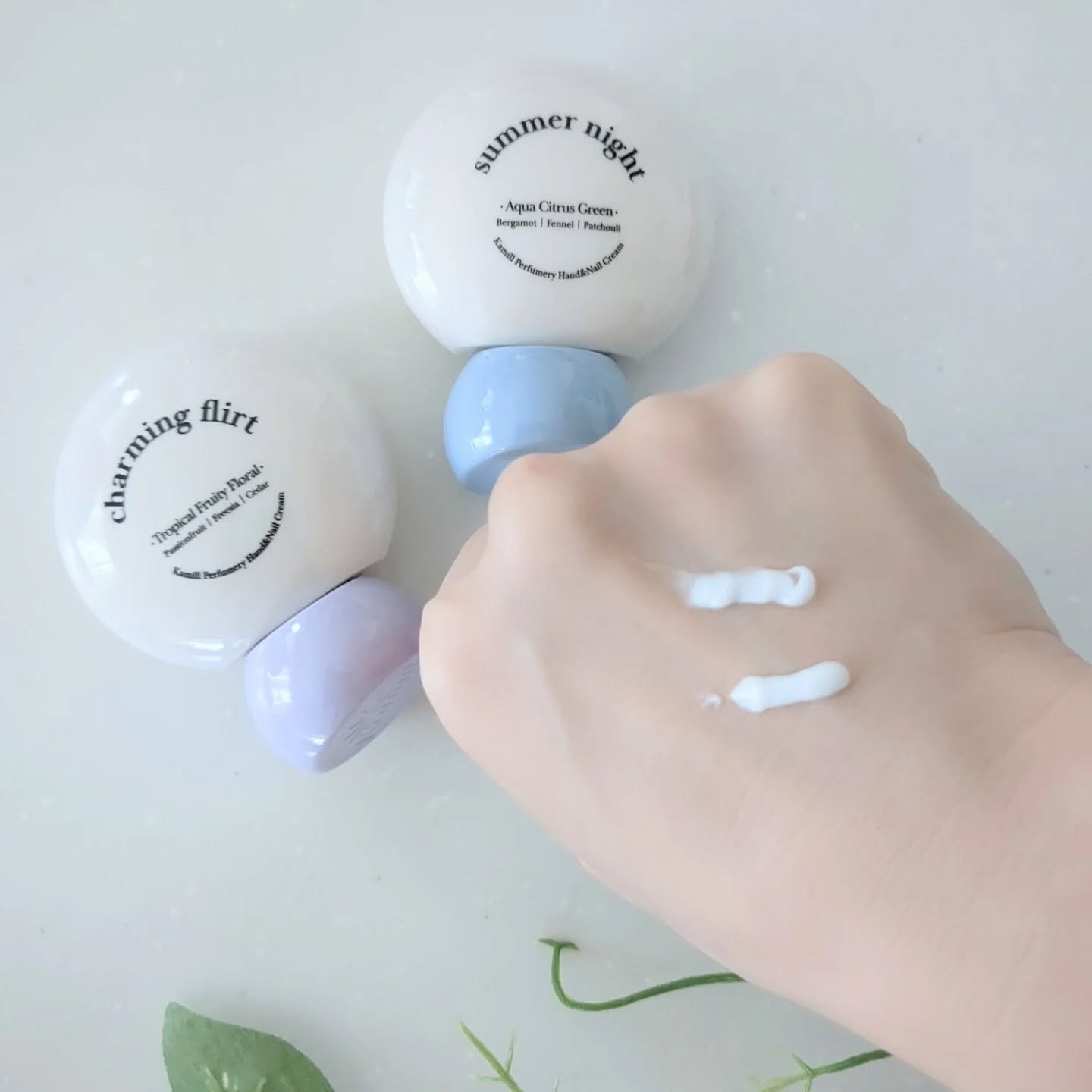 Kamillパフューマリーハンド&ネイルクリームOliveyoungハンドケア5年連続1位ブランド✨6種類ある香りの中から、サマーナイトとチャーミングフラートを使ってみたよ😊🩵サマーナイト水気を含んだほろ苦い草の葉とマンダリン、清涼感のあるア...