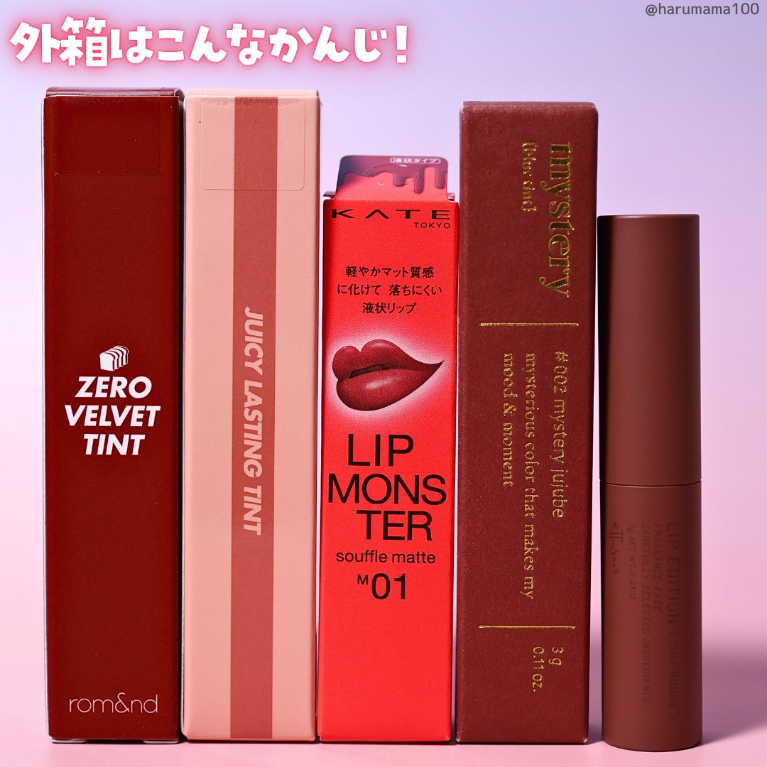 ロムアンドのジューシーラスティングティント、発色も良くて艶のある仕上がりで可愛いですね✨