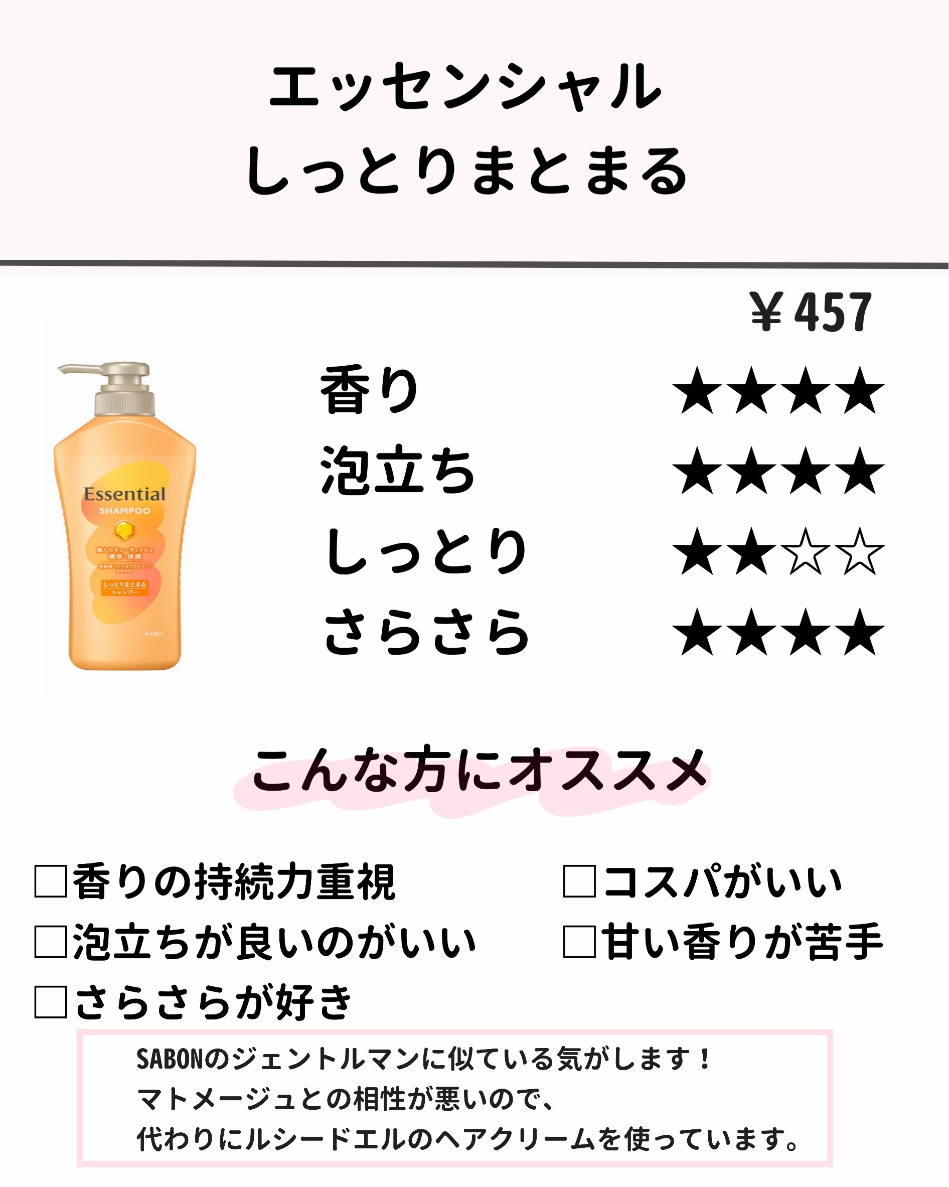 | ツヤのあるしっとりとまとまった仕上がり。とってもいい香りで毎日お風呂に広がる香りを楽しんでバスタイムを過ごしています。 | 詳細を見る | ||