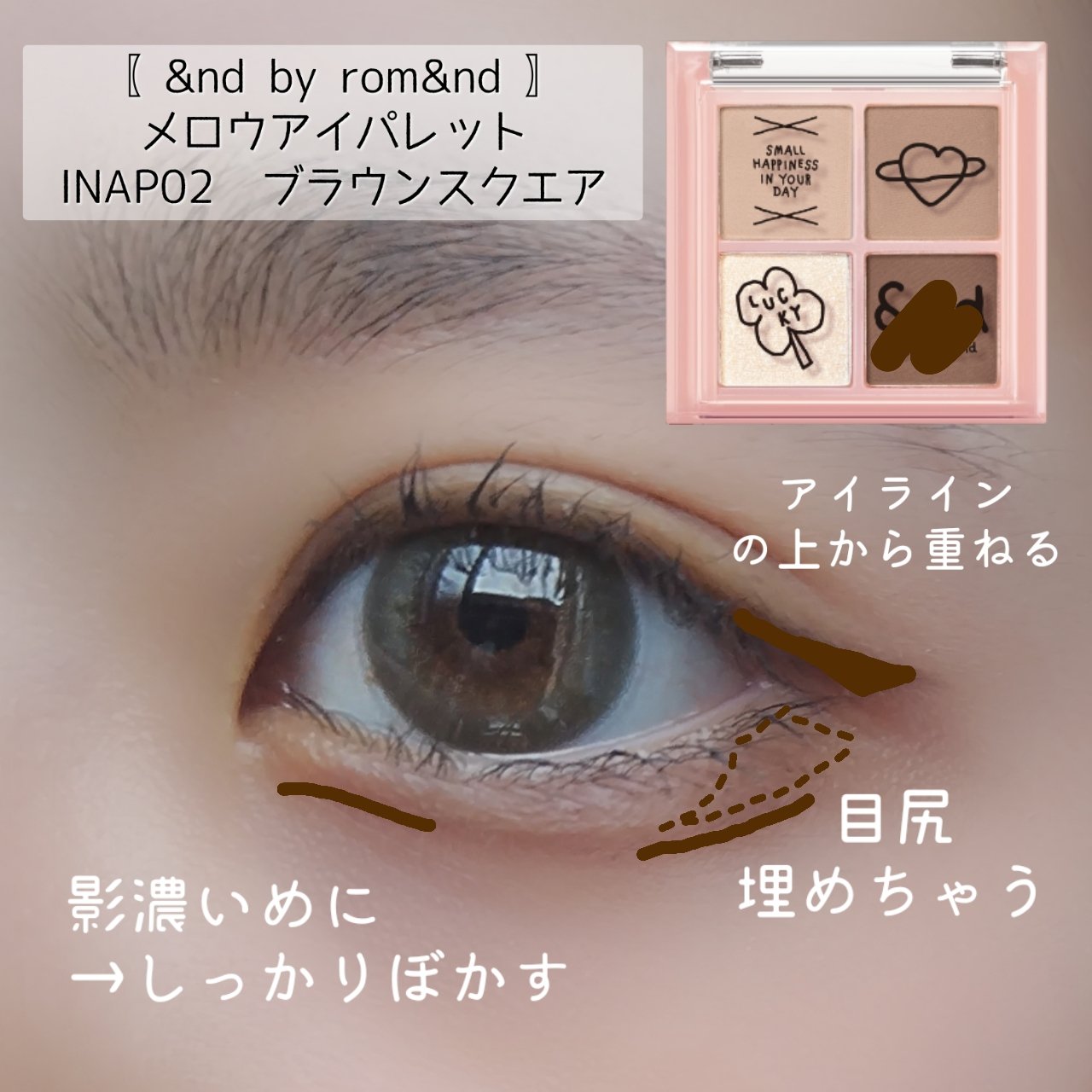 &ndbyrom&ndローソンで買えるアンドバイロムアンド♡ミニサイズでポーチ用のコスメにもピッタリ🙌メロウアイパレットINAP02ブラウンスクエアブルベに使いやすいヌーディなブラウングラッシーボムティントINAP02ヌードスクエアナチュラル...