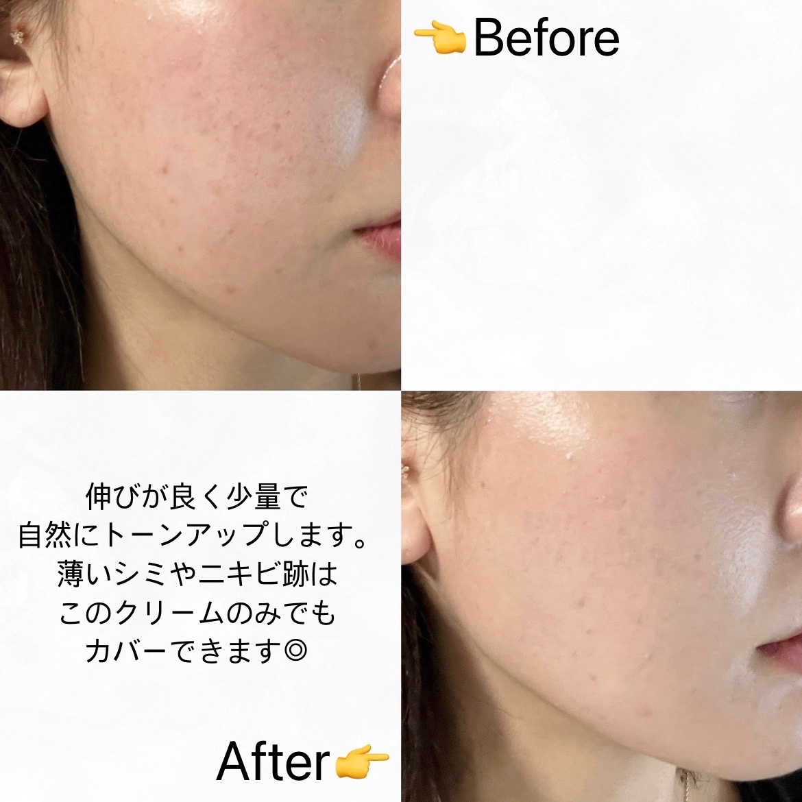 自然なすっぴんに肌のトーンを補正してくれるクリームと聞いて興味深々🤩 肌のシミやくすみや赤みを自然にほわんとカバーしてくれました❣ SPF遮断だけでなくPFA遮断まで、しっかり紫外線をブロックする成分なので安心です。