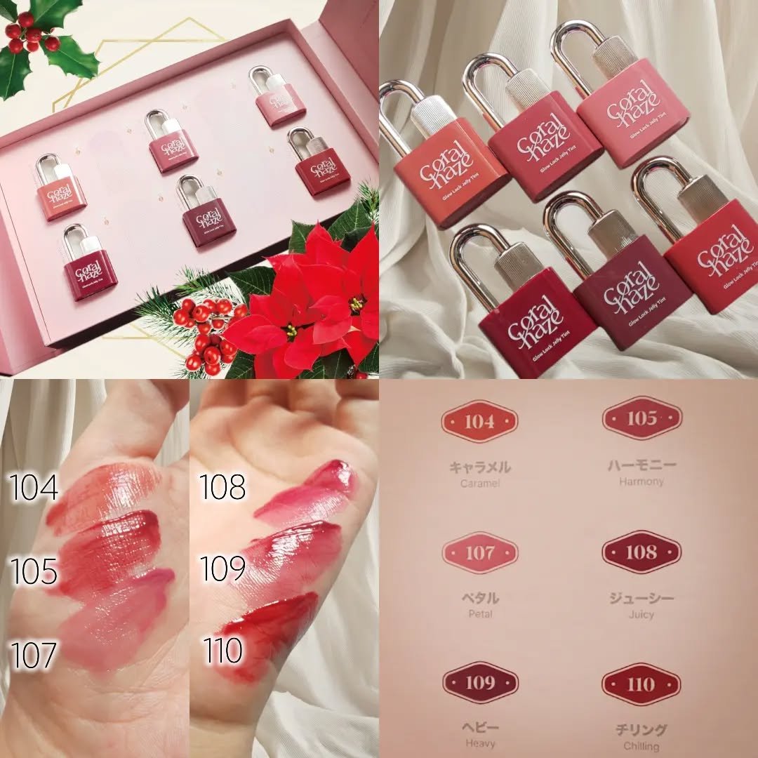 今SNSで可愛すぎるとバズってるアイテム❤︎ 前回プラザ購入品で紹介したコーラルヘイズの南京錠リップ🔐✨ ✔︎105 Harmony 魅惑的な色気を演出するソフトローズ 🌹 くすみがかったローズカラーなので、大人っぽい印象になる✨ テクスチャーはゼリーのような粘膜テクスチャーで、めちゃくちゃ発色がいい◎ さらに、透け感のあるちゅるちゅるリップに仕上がる🥺✨✨
