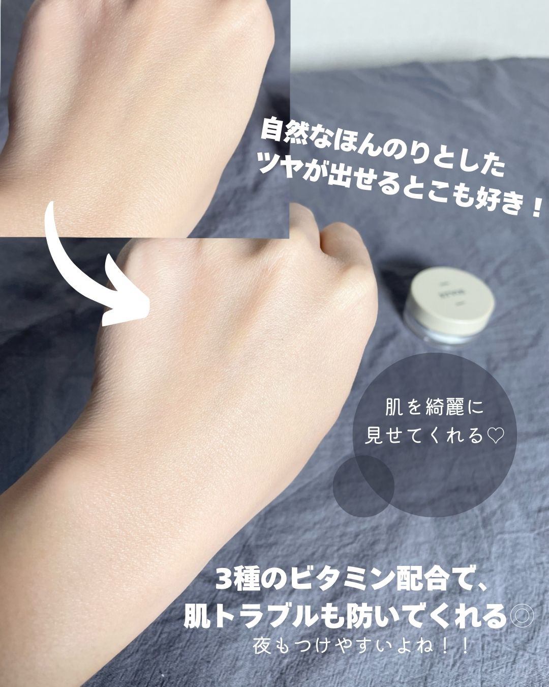 - ミネラルと3種類のビタミン※配合。 化粧下地や仕上げパウダー、就寝前のトリートメントパウダーと、様々な使い方ができる優れもの。 すっぴんを見せたくないときの夜用ファンデにも。 ※整肌成分(リン酸アスコルビルMg、トコフェロール、ビタミンA油)