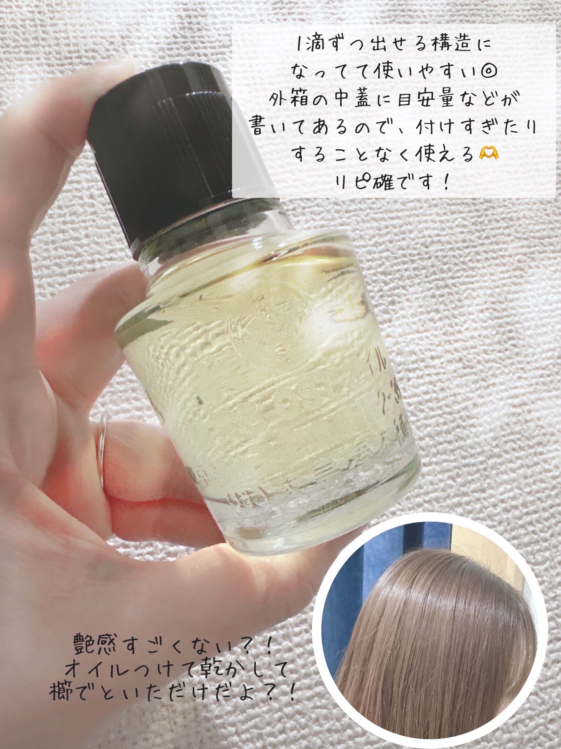| ヘアケア・スタイリングランキング第23位 | さらっとした扱いやすいオイル ! ドライヤーの前に使うのはもちろん、乾いた髪につけてもベタつかなくてすごい! | 詳細を見る | |