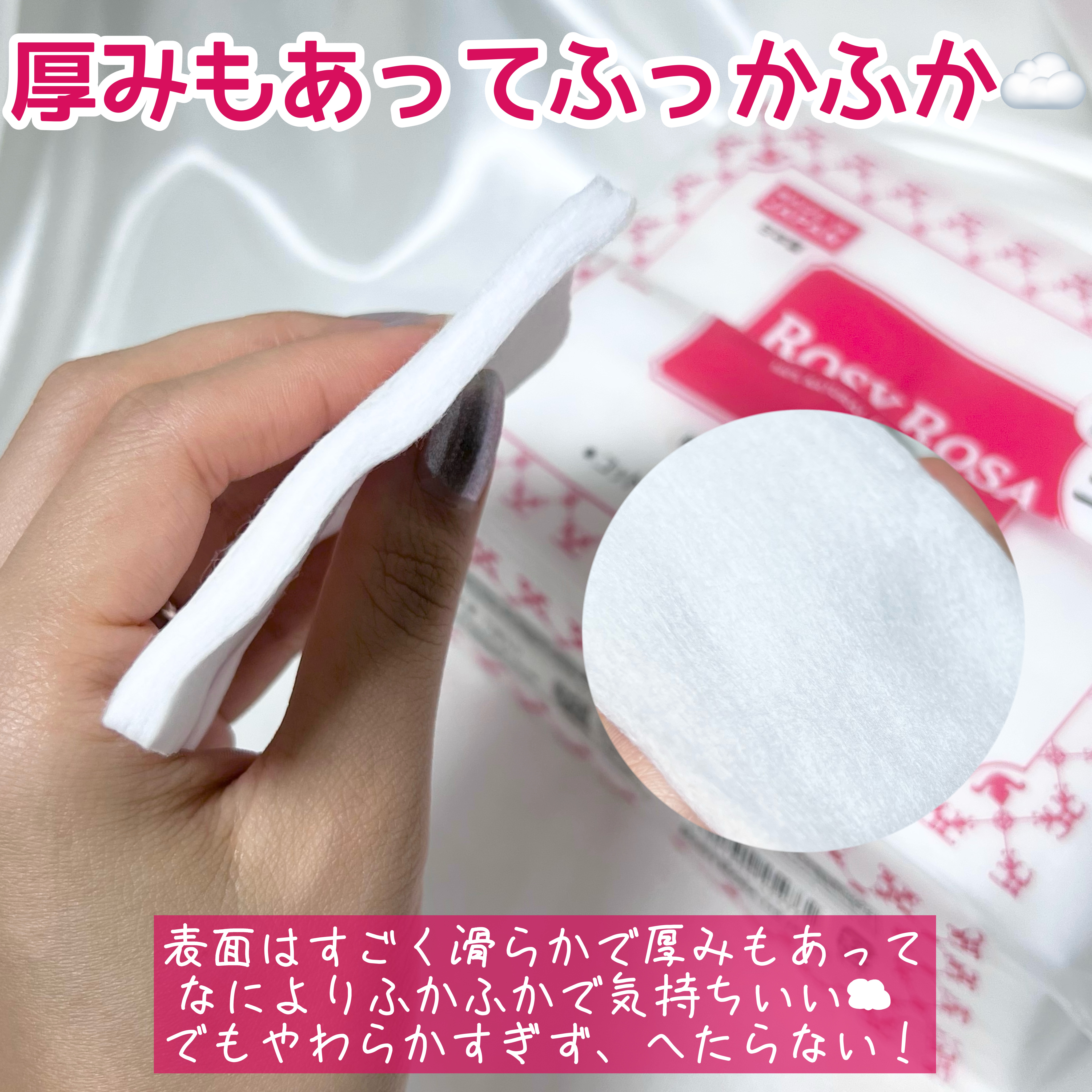 【潤いに差が出る💎コットン使っていますか?】➼ROSYROSA大きめコットンふかふかで肌触りなめらか✨️毛羽立ちも気にならないので使いやすいです💫なにより72枚入でコスパが良い🥺◻️コットンを使っていない方、その化粧水の使い方勿体ないです😫手...