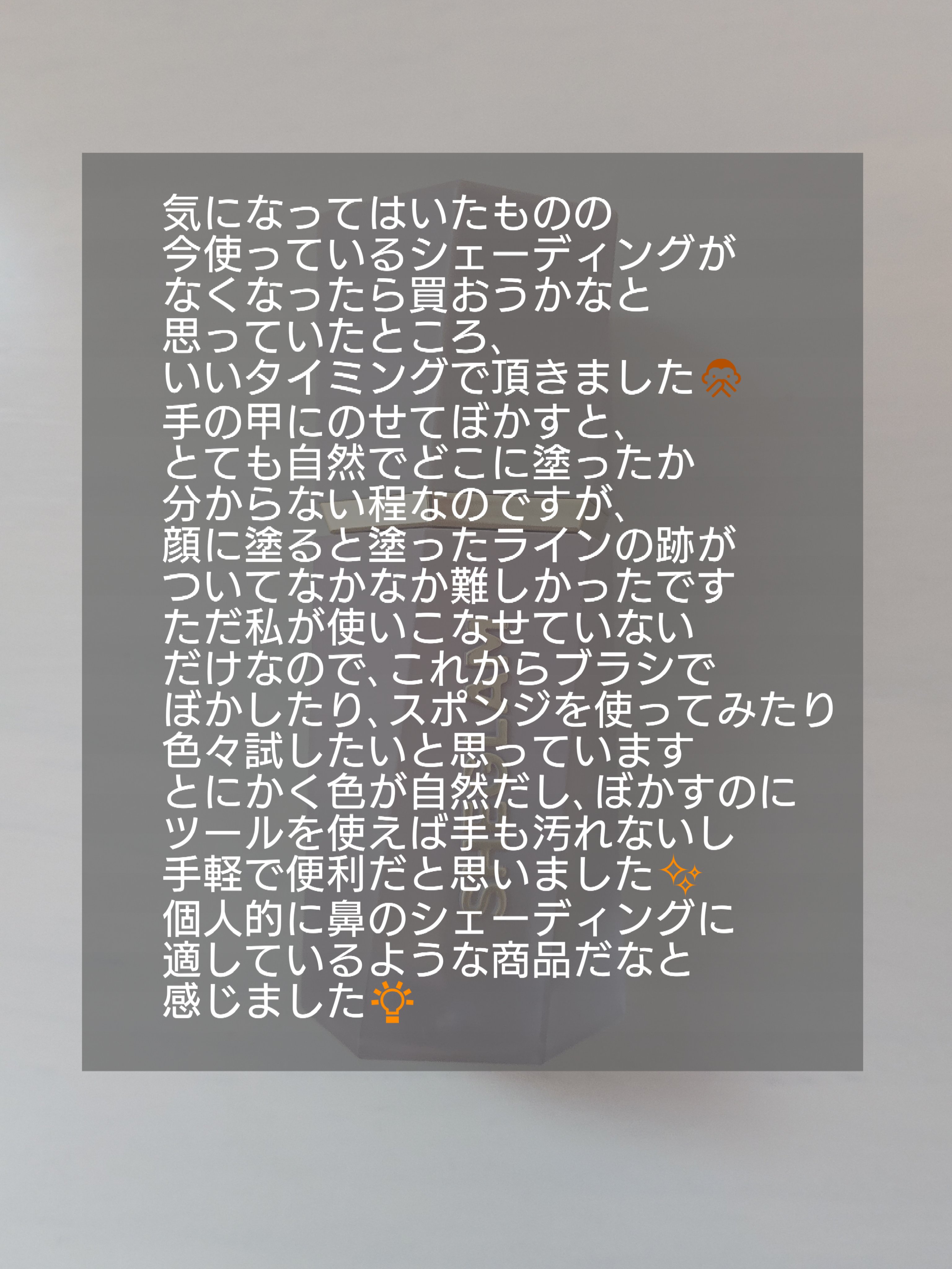 | ベースメイクランキング第77位 | 「透け影」で平たい族の私の顔に自然な立体感が出るシャドウオンフェースはもう手放せない…! | 詳細を見る | |