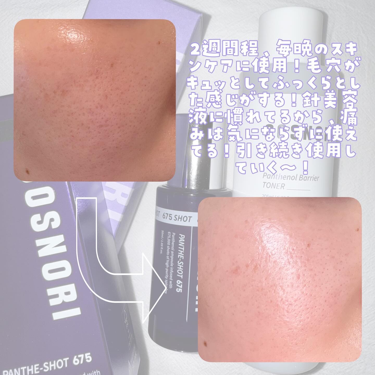 #COSNORI#パンテショット675#パンテノールバリアトナーモニターに当選し頂きました💜肌バリア改善やハリツヤが期待できる針美容液とトナーのセット👯♀️♡どちらも軽い付け心地で使いやすい👏🏻詳しい使用感は写真へ☑️#PR#パンテハリ#コ...