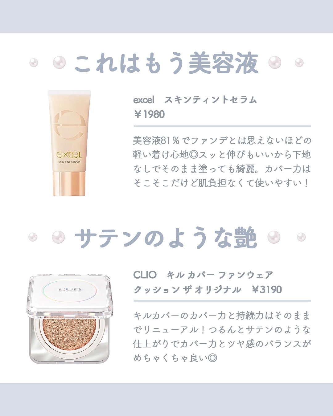 肌褒められる🥚✨ 白玉ツヤファンデをまとめたよ🫰🏻 ツヤ系ファンデは乾燥しないものが多いからこれからの時期は毎日使いたい🫶🏻💖 ブルベ向けの美容情報を紹介してるよ🩵