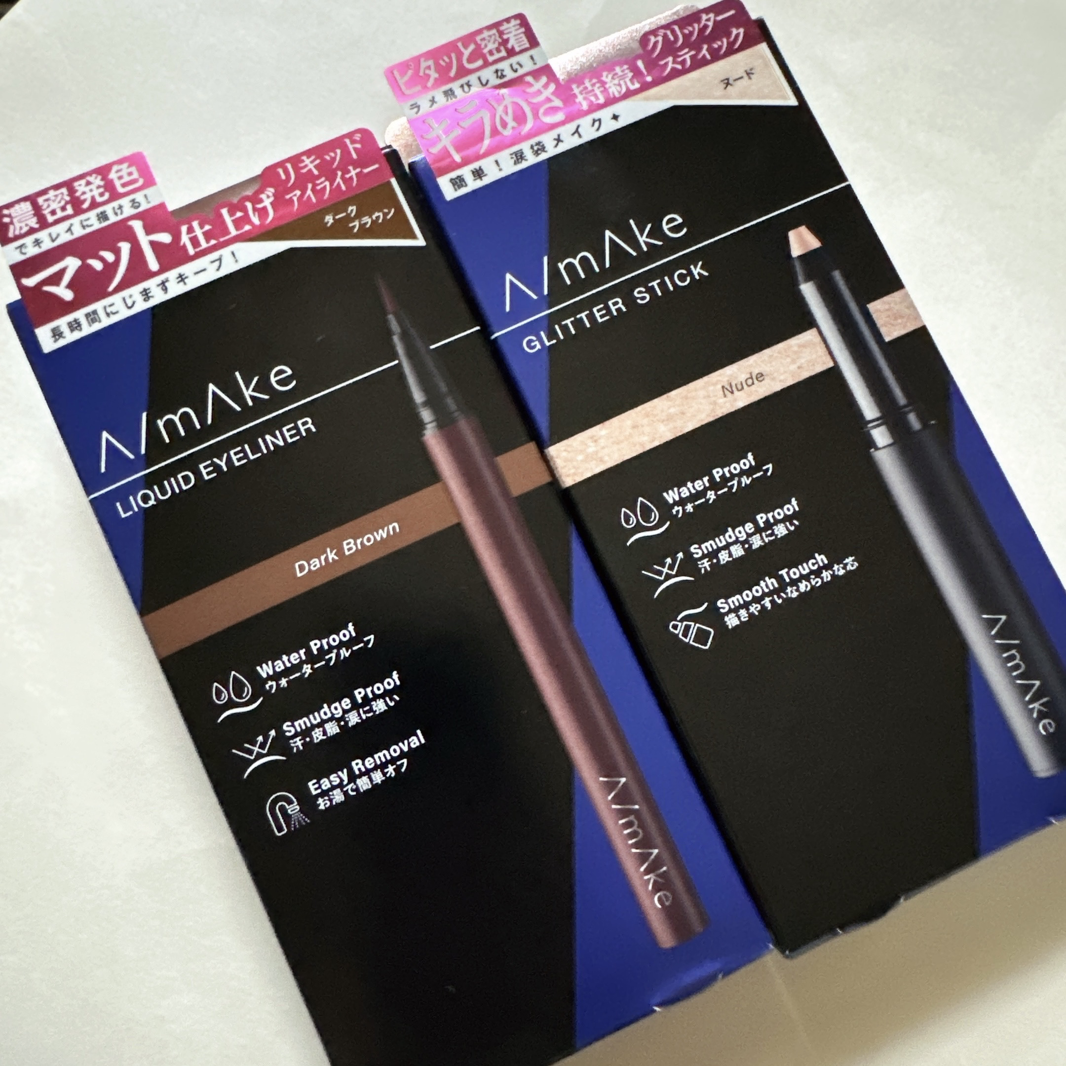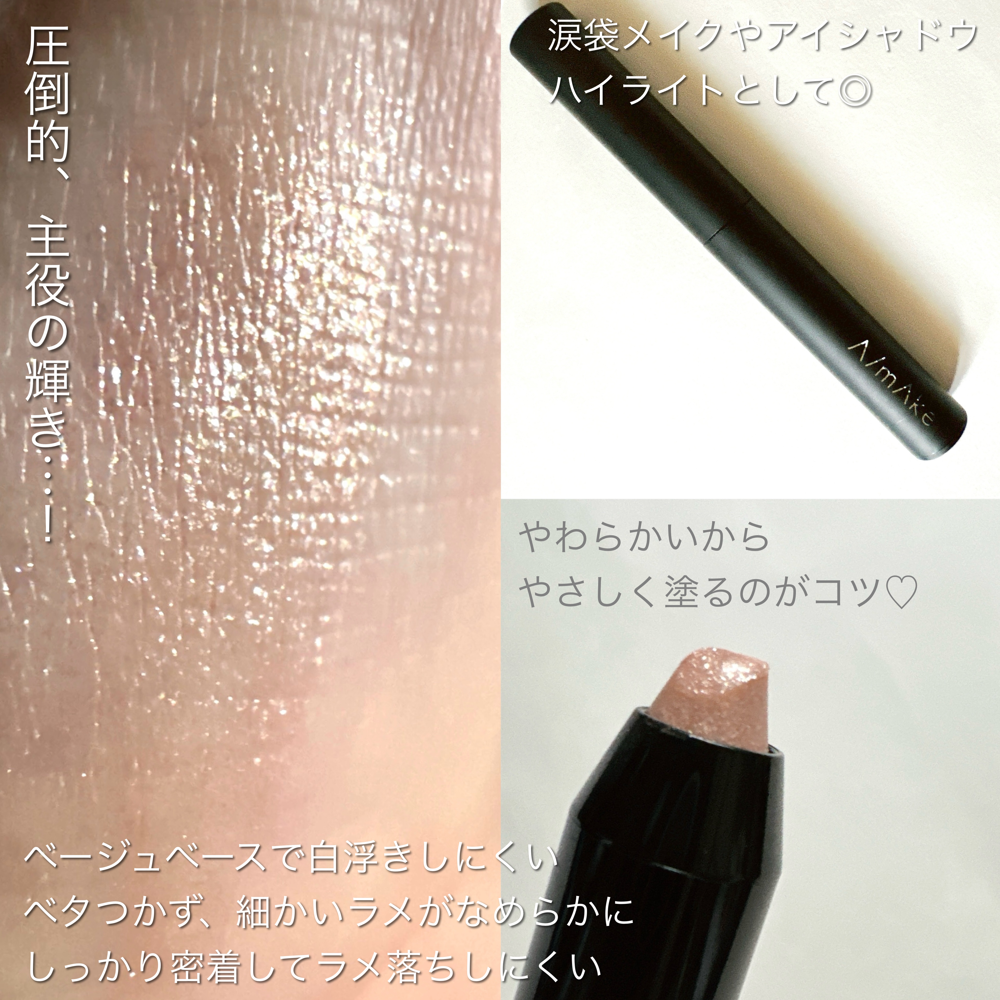 エーメイクのアイメイクコスメの必需品♡ どちらもこれ1本足すだけで盛れるアイテム! グリッタースティックは程よい硬さで涙袋へ負担を少なくラメが乗せらるよ♪ グレージュは抜け感のあるオシャレカラーでどんなアイシャドウとも相性が良かった!