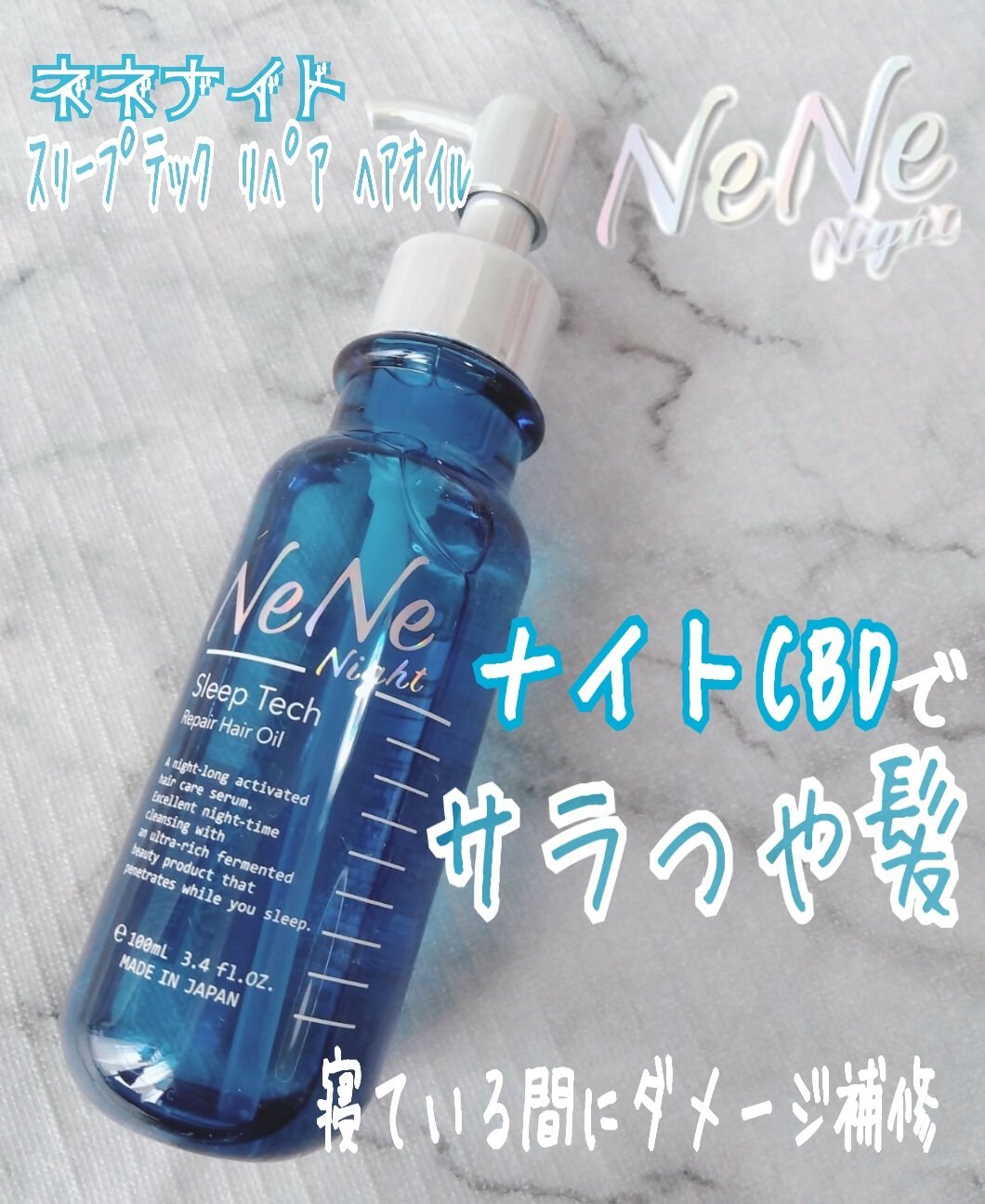 NeNeNightスリープテックリペアヘアオイル〜商品説明〜夜の摩擦ダメージと睡眠の質に着目した「スリープテック美容」ヘアケアナイトCBD処方で、夜の摩擦ダメージや、パサつき・翌朝の寝ぐせなどのストレスを軽減し、まとまりのあるさらツヤ髪へ導く...