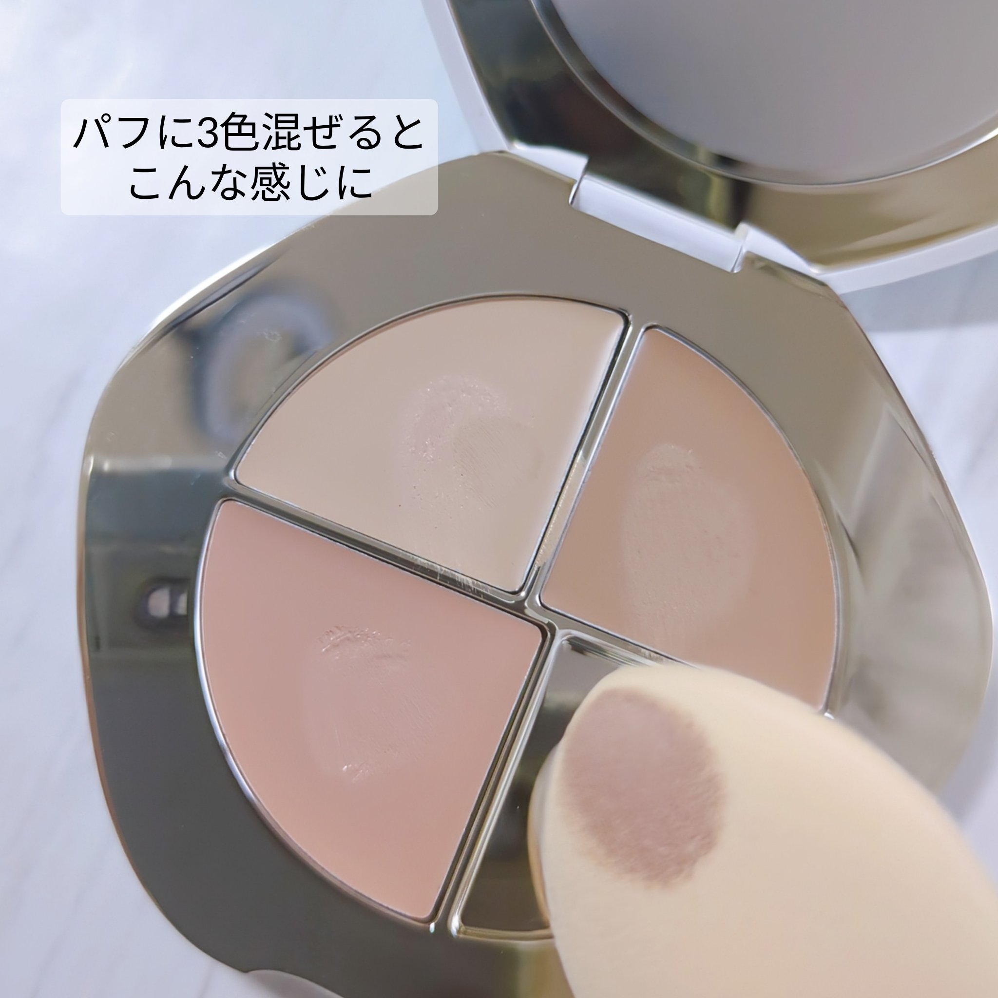 点悩みも面悩みも両方いける コンシーラーパレット🎨 質感の違う3色がセットされてるの🎨 ☑︎AライトベージュとBオークルベージュは生チョコの質感 柔らかくて肌との密着性に優れしっかりカバー さらにこのパレットの良いところは右下にミックススペースがあって混ぜて自分に合った色を作ったりできるの🫶