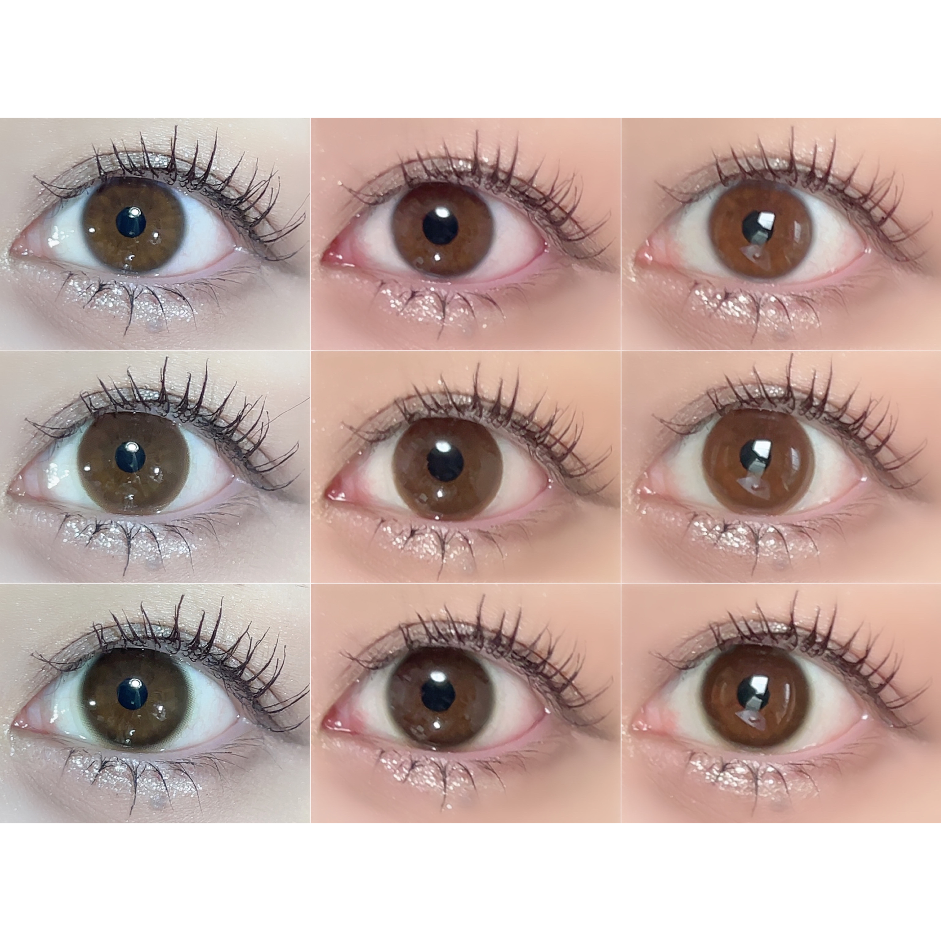 今年は裸眼メイクの日も増えて、愛用カラコンもだいぶサイズが小さく裸眼見え系になった✨ ナチュラルで裸眼っぽレンズなら②⑧⑨逆にちょっとデカ目なら④⑤⑦がお気に入り🌈 透明感があってふんわりしたフチでヴェールをまとう感じの瞳に仕上がるカラコンが好きやから、ぜひ参考にしてください\(^o^)/