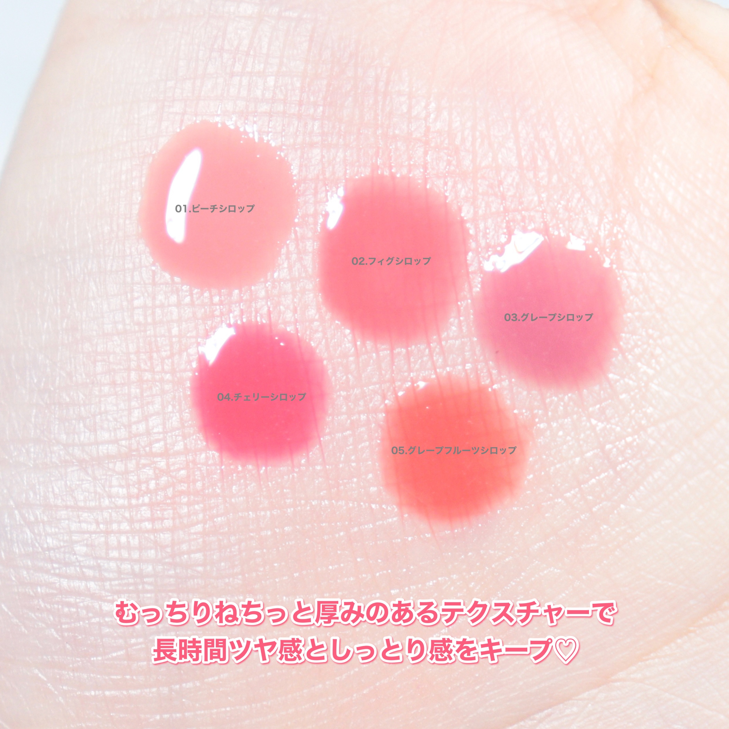 - シロップ光沢溢れる、ぷるぷるオーバーリップを演出 - 想像以上のツヤリップ レイヤリングするほど鮮明なツヤ&シロップカラー演出 -長時間ツヤをキープ 唇のシワを優しい使い心地でカバーし、乾燥しにくく、 しっとりとしたリップ完成 -プランプ効果(メイク効果による) さわやかなプランプ効果でぷるぷるオーバーリップを演出