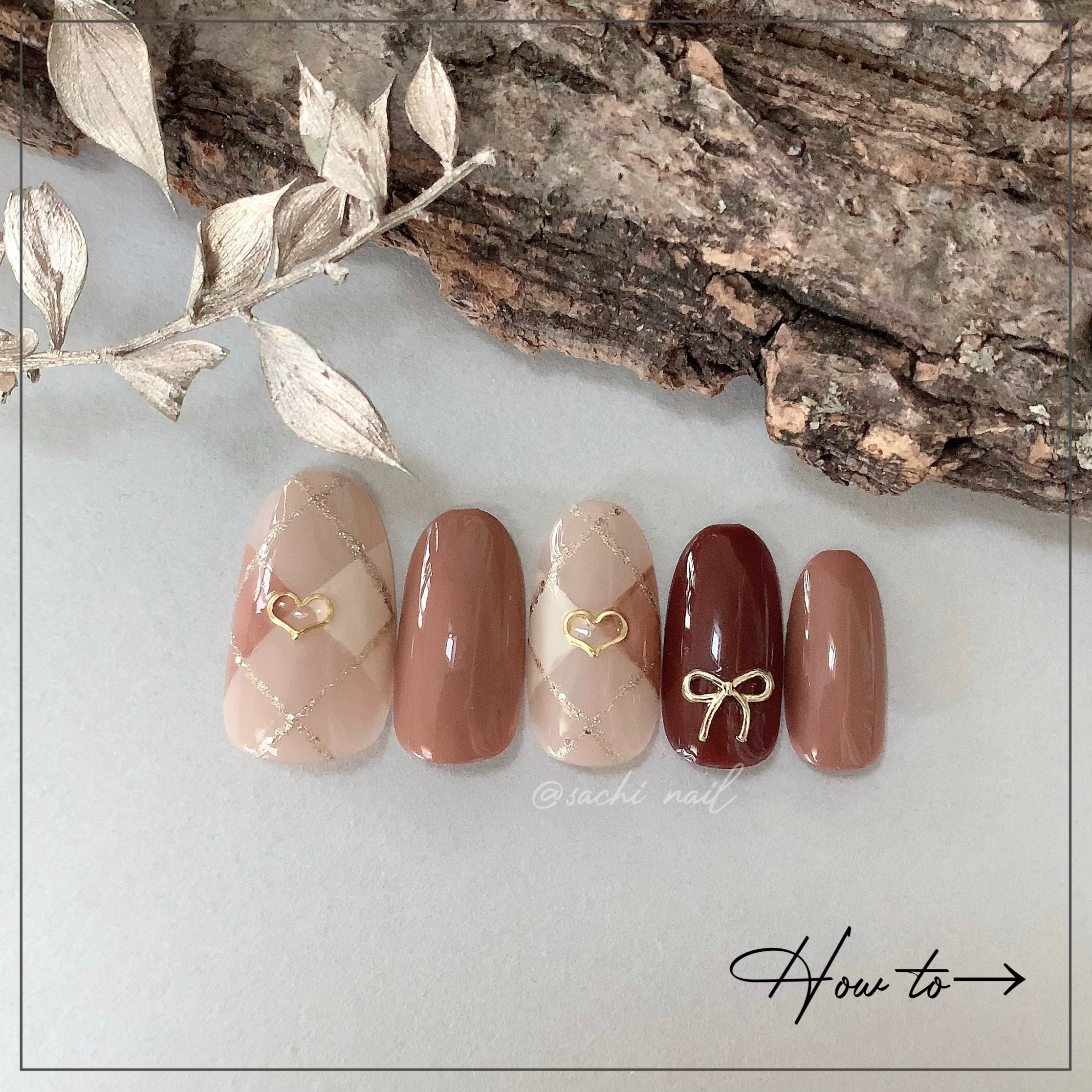 ワンカラーでも指ごとに色を変えるだけでオシャレに見えます💕 画像のようにゴールドラインとストーンを少し足すだけで華やかさがアップ🥰 何度かご紹介したことのあるスポンジで作るグラデーションです✨ スポンジを使うことで境目が綺麗に馴染んでくれます💕 アルミホイルの上でブラウンとトップコートを1:1くらいで混ぜたものを、トップコートのハケに取って3箇所に塗るだけ👌 事前に混ぜたものを塗ることで、爪の上でぼかすより簡単に出来ます💕 ベースカラーが乾く前に点置きしてぼかすことで綺麗にぼかせます✨ スピードが大事なので、使うポリッシュのキャップは全て開けておきましょう😊 天然石のラインはガタガタの方がより天然石っぽく見えるので、ラインを描くのが苦手な方でも大丈夫🙆♀️ 難しそうに見えて、やってみると意外と簡単に出来ます♡