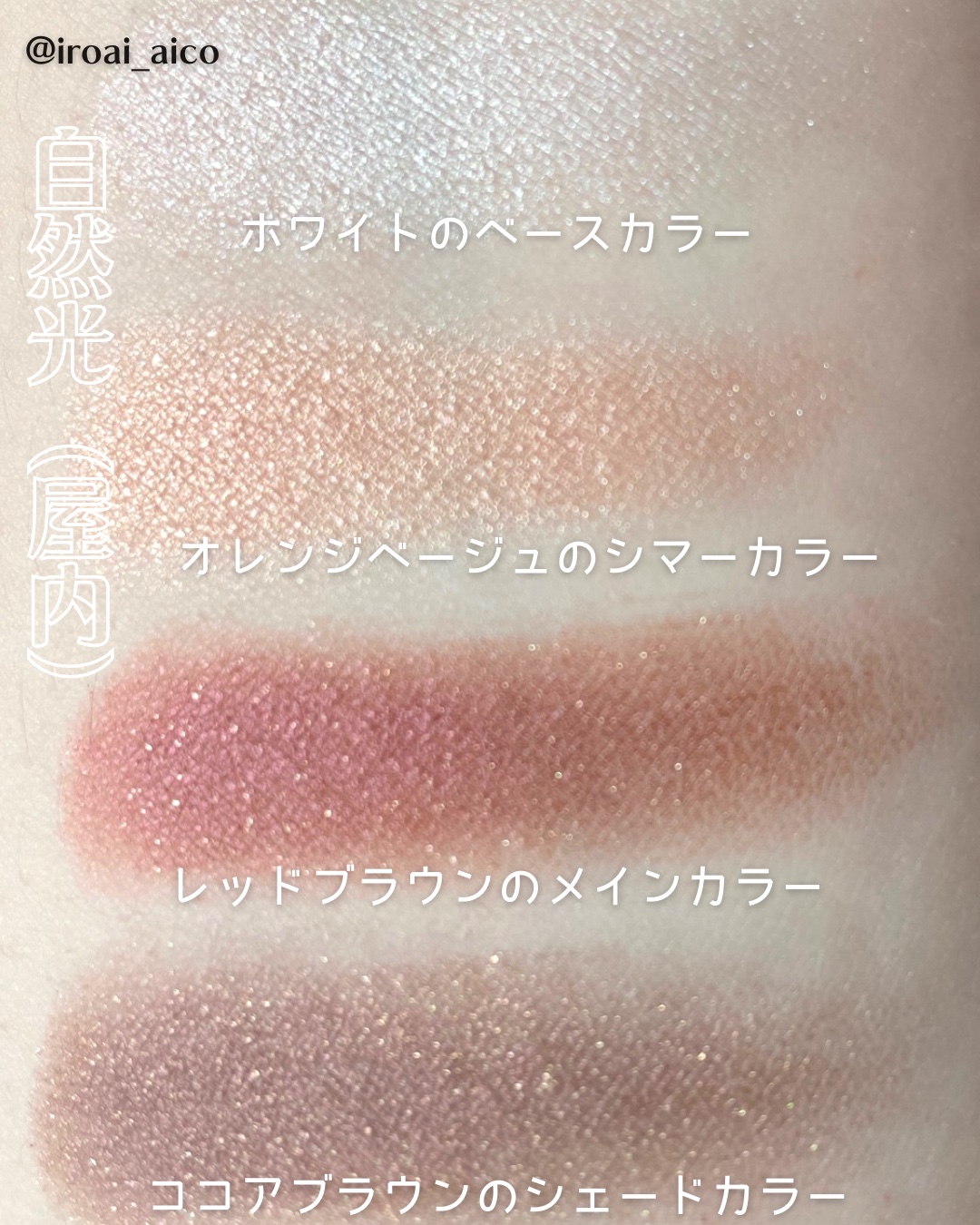 - <BE-1 ライトベージュ系> タルク、ミネラルオイル、水添ポリイソブテン、合成金雲母、ジメチコン、トリエチルヘキサノイン、 (ビニルジメチコン/メチコンシルセスキオキサン) クロスポリマー、ジフェニルシロキシフェニルトリメチコン、 (HDI/トリメチロールヘキシルラクトン) クロスポリマー、セスキステアリン酸ソルビタン、トコフェロール、ヒアルロン酸Na、PET、イソドデカン、キャンデリラロウ、シリカ、スクワラン、パラフィン、マイクロクリスタリンワックス、ラウリン酸亜鉛、リンゴ酸ジイソステアリル、酸化スズ、メチルパラベン、グンジョウ、マイカ、酸化チタン、酸化亜鉛、酸化鉄 <BL-8 スモーキーネイビー系> タルク、ミネラルオイル、水添ポリイソブテン、ジメチコン、合成金雲母、トリエチルヘキサノイン、 (ビニルジメチコン/メチコンシルセスキオキサン) クロスポリマー、ジフェニルシロキシフェニルトリメチコン、 (HDI/トリメチロールヘキシルラクトン) クロスポリマー、セスキステアリン酸ソルビタン、ホウケイ酸 (Ca/Al) 、トコフェロール、ヒアルロン酸Na、PET、イソドデカン、キャンデリラロウ、シリカ、スクワラン、パラフィン、マイクロクリスタリンワックス、メタクリル酸メチルクロスポリマー、リンゴ酸ジイソステアリル、酸化スズ、水酸化Al、メチルパラベン、グンジョウ、コンジョウ、マイカ、酸化チタン、酸化亜鉛、酸化鉄、硫酸Ba <BR-5 ココアブラウン系> タルク、ミネラルオイル、水添ポリイソブテン、ジメチコン、合成金雲母、トリエチルヘキサノイン、ジフェニルシロキシフェニルトリメチコン、 (ビニルジメチコン/メチコンシルセスキオキサン) クロスポリマー、ホウケイ酸 (Ca/Al) 、 (HDI/トリメチロールヘキシルラクトン) クロスポリマー、セスキステアリン酸ソルビタン、トコフェロール、ヒアルロン酸Na、PET、イソドデカン、キャンデリラロウ、シリカ、スクワラン、パラフィン、マイクロクリスタリンワックス、ラウリン酸亜鉛、リンゴ酸ジイソステアリル、酸化スズ、水酸化Al、メチルパラベン、グンジョウ、マイカ、酸化チタン、酸化亜鉛、酸化鉄 <GR-7 ウォームカーキ系> タルク、ミネラルオイル、水添ポリイソブテン、ジメチコン、合成金雲母、トリエチルヘキサノイン、ジフェニルシロキシフェニルトリメチコン、 (ビニルジメチコン/メチコンシルセスキオキサン) クロスポリマー、 (HDI/トリメチロールヘキシルラクトン) クロスポリマー、セスキステアリン酸ソルビタン、トコフェロール、ヒアルロン酸Na、PET、イソドデカン、キャンデリラロウ、シリカ、スクワラン、パラフィン、マイクロクリスタリンワックス、リンゴ酸ジイソステアリル、酸化スズ、メチルパラベン、グンジョウ、マイカ、酸化チタン、酸化亜鉛、酸化鉄 <OR-2 ブラウニッシュオレンジ系> タルク、ミネラルオイル、水添ポリイソブテン、ジメチコン、合成金雲母、トリエチルヘキサノイン、 (ビニルジメチコン/メチコンシルセスキオキサン) クロスポリマー、ジフェニルシロキシフェニルトリメチコン、 (HDI/トリメチロールヘキシルラクトン) クロスポリマー、セスキステアリン酸ソルビタン、ホウケイ酸 (Ca/Al) 、トコフェロール、ヒアルロン酸Na、PET、イソドデカン、キャンデリラロウ、シリカ、スクワラン、パラフィン、マイクロクリスタリンワックス、リンゴ酸ジイソステアリル、酸化スズ、メチルパラベン、グンジョウ、マイカ、酸化チタン、酸化亜鉛、酸化鉄、黄4、赤226 <PK-3 バーガンディ系> タルク、ミネラルオイル、水添ポリイソブテン、合成金雲母、ジメチコン、トリエチルヘキサノイン、ジフェニルシロキシフェニルトリメチコン、 (ビニルジメチコン/メチコンシルセスキオキサン) クロスポリマー、 (HDI/トリメチロールヘキシルラクトン) クロスポリマー、ホウケイ酸 (Ca/Al) 、セスキステアリン酸ソルビタン、トコフェロール、ヒアルロン酸Na、PET、イソドデカン、キャンデリラロウ、シリカ、スクワラン、パラフィン、マイクロクリスタリンワックス、リンゴ酸ジイソステアリル、酸化スズ、メチルパラベン、グンジョウ、マイカ、酸化チタン、酸化亜鉛、酸化鉄 <PK-4 モーヴピンク系> タルク、ミネラルオイル、水添ポリイソブテン、ジメチコン、トリエチルヘキサノイン、ジフェニルシロキシフェニルトリメチコン、 (ビニルジメチコン/メチコンシルセスキオキサン) クロスポリマー、合成金雲母、 (HDI/トリメチロールヘキシルラクトン) クロスポリマー、セスキステアリン酸ソルビタン、トコフェロール、ヒアルロン酸Na、PET、イソドデカン、キャンデリラロウ、シリカ、スクワラン、パラフィン、マイクロクリスタリンワックス、ラウリン酸亜鉛、リンゴ酸ジイソステアリル、酸化スズ、メチルパラベン、グンジョウ、マイカ、酸化チタン、酸化亜鉛、酸化鉄、赤202、赤226 <RD-6 ブラウニッシュレッド系> タルク、ミネラルオイル、水添ポリイソブテン、ジメチコン、トリエチル