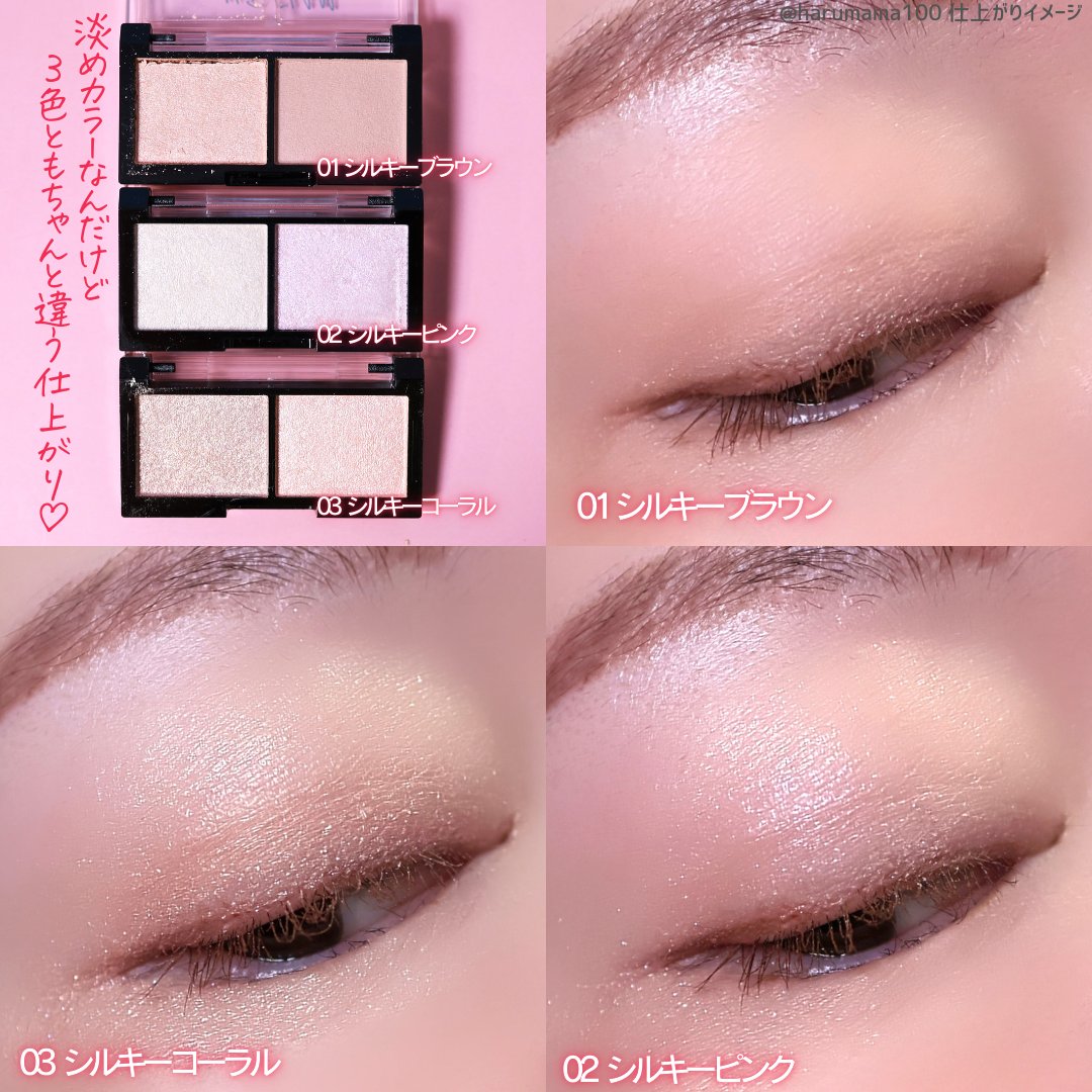 なめらかな細かいパウダーでピタッとつく感じです。 私は手持ちの濃い色のアイシャドウと合わせて使うつもりで購入しましたので正解👍でしたが、これ単体で使おうとするならば少し物足りない⁈かもしれません。 110円で このなめらかなパウダーアイシャドウはありがたいですね😉