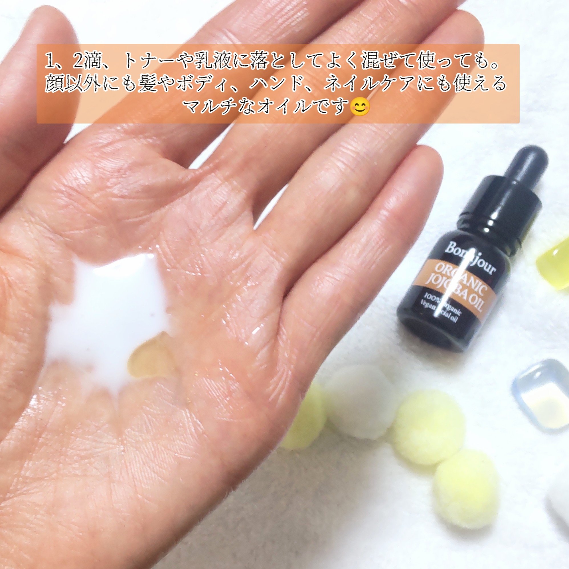 | 顔・髪にも使え、オイルなのにベタつかない✨ サラッとした使用感がお気に入りポイント! | 詳細を見る | ||