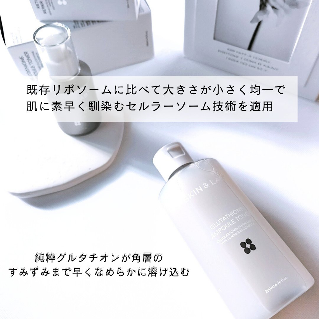 純度99%のグルタチオンが3,000ppmも配合されてるよ!かなり多い方らしくて、この配合量にはびっくり🥹♡♡ グルタチオンは美白*ケアに効果あり レチノールを低分子化する事でA反応も起こりづらい処方らしい!だからレチノール初心者の人向けエイジングケア**に取り入れたいセラム SKIN&LAB グルタチオンアンプルトナー ¥3,600(税込)