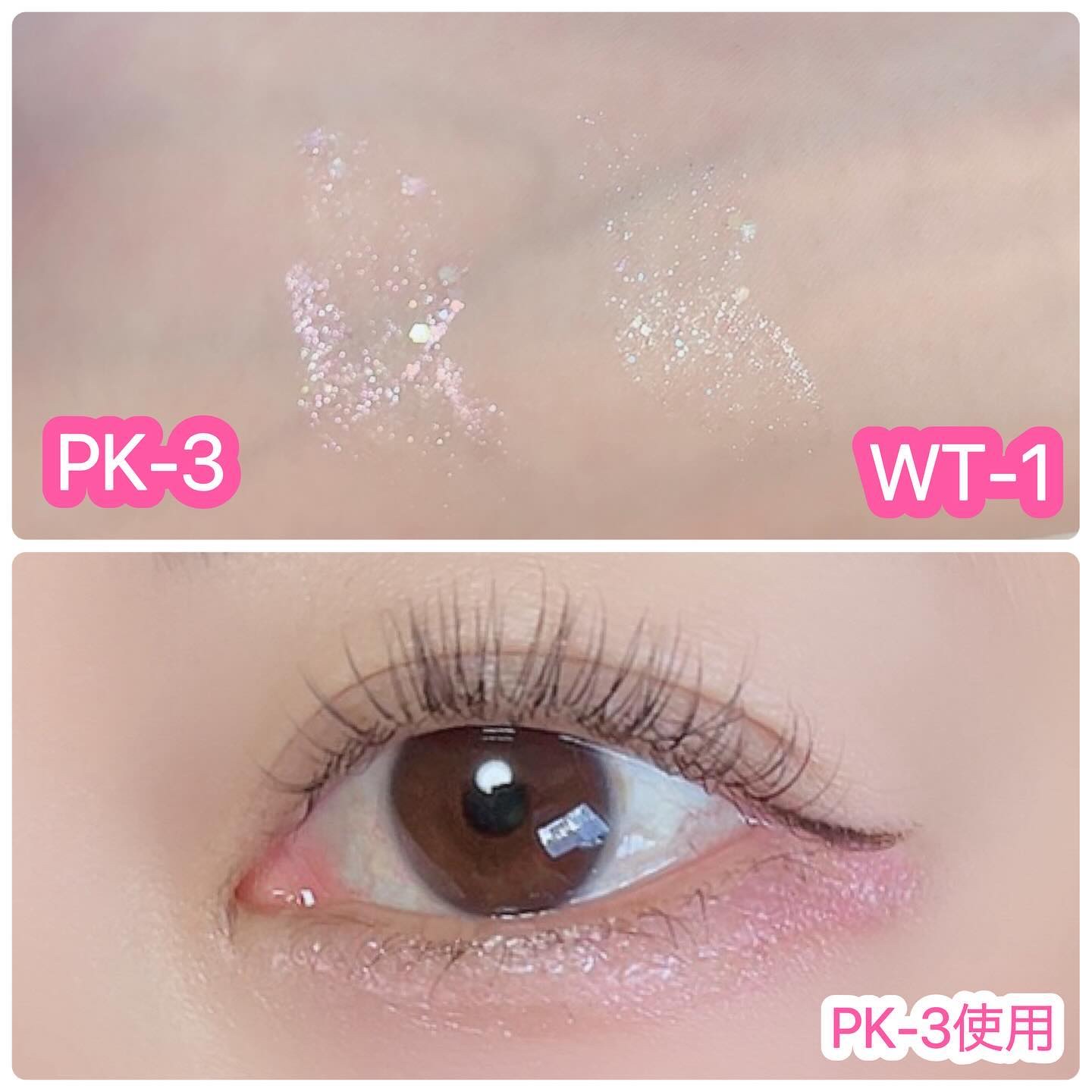グリッターをたっぷり配合したリキッドで 乾くとぴたっと密着してくれてキラッキラ✨ 少し乾燥しやすいかなって思うけどほんの少しをちょんちょんのせて広げるとそんなに気にならないしとってもかわいい🫶🏻