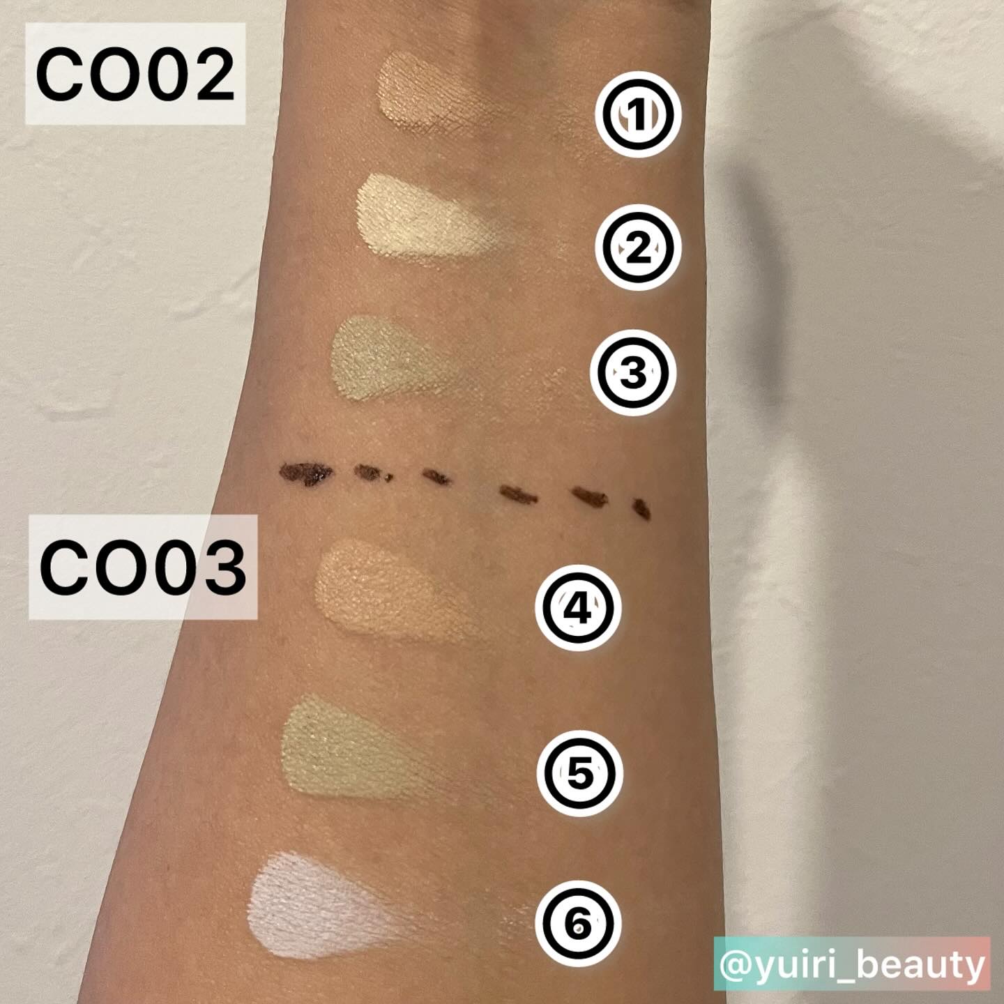 - <C01> ジメチコン、シクロペンタシロキサン、ラウリン酸イソアミル、イソノナン酸イソノニル、(ビニルジメチコン/メチコンシルセスキオキサン)クロスポリマー、マイカ、合成ワックス、オリーブ油脂肪酸ソルビタン、ヘキサ(ヒドロキシステアリン酸/ステアリン酸/ロジン酸)ジペンタエリスリチル、マイクロクリスタリンワックス、ホウケイ酸(Ca/Na)、フェニルトリメチコン、水添ポリイソブテン、ポリリシノレイン酸ポリグリセリル-6、(VP/ヘキサデセン)コポリマー、セスキオレイン酸ソルビタン、水添ポリデセン、トリエトキシカプリリルシラン、水酸化Al、カプリル酸グリセリル、カプリリルグリコール、ジステアルジモニウムヘクトライト、ハイドロゲンジメチコン、スクワラン、水、グリセリン、スベリヒユエキス、BG、トリ(カプリル酸/カプリン酸)グリセリル、セラミドNP、水添レシチン、1,2-ヘキサンジオール、ヒアルロン酸Na、ツボクサエキス、酸化チタン、酸化鉄、酸化亜鉛、ビスジグリセリルポリアシルアジペート-2、オクテニルコハク酸デンプンAl、ポリメチルシルセスキオキサン、シリカ <C02> ジメチコン、フェニルトリメチコン、ラウリン酸イソアミル、イソノナン酸イソノニル、合成ワックス、水添ポリイソブテン、ビスジグリセリルポリアシルアジペート-2、オクテニルコハク酸デンプンAl、マイクロクリスタリンワックス、ポリメチルシルセスキオキサン、オリーブ油脂肪酸ソルビタン、マイカ、シリカ、水添ポリデセン、(VP/ヘキサデセン)コポリマー、ポリリシノレイン酸ポリグリセリル-6、ヘキサ(ヒドロキシステアリン酸/ステアリン酸/ロジン酸)ジペンタエリスリチル、セスキオレイン酸ソルビタン、トリエトキシカプリリルシラン、水酸化Al、カプリル酸グリセリル、カプリリルグリコール、ジステアルジモニウムヘクトライト、スクワラン、水、グリセリン、スベリヒユエキス、BG、トリ(カプリル酸/カプリン酸)グリセリル、セラミドNP、水添レシチン、1,2-ヘキサンジオール、ヒアルロン酸Na、ツボクサエキス、酸化チタン、酸化鉄、酸化クロム、酸化鉄 <C03> ジメチコン、フェニルトリメチコン、ラウリン酸イソアミル、イソノナン酸イソノニル、合成ワックス、水添ポリイソブテン、ビスジグリセリルポリアシルアジペート-2、オクテニルコハク酸デンプンAl、マイクロクリスタリンワックス、ポリメチルシルセスキオキサン、オリーブ油脂肪酸ソルビタン、マイカ、シリカ、水添ポリデセン、(VP/ヘキサデセン)コポリマー、ポリリシノレイン酸ポリグリセリル-6、ヘキサ(ヒドロキシステアリン酸/ステアリン酸/ロジン酸)ジペンタエリスリチル、セスキオレイン酸ソルビタン、トリエトキシカプリリルシラン、水酸化Al、カプリル酸グリセリル、カプリリルグリコール、ジステアルジモニウムヘクトライト、スクワラン、水、グリセリン、スベリヒユエキス、BG、トリ(カプリル酸/カプリン酸)グリセリル、セラミドNP、水添レシチン、1,2-ヘキサンジオール、ヒアルロン酸Na、ツボクサエキス、酸化チタン、酸化鉄、グンジョウ、酸化クロム