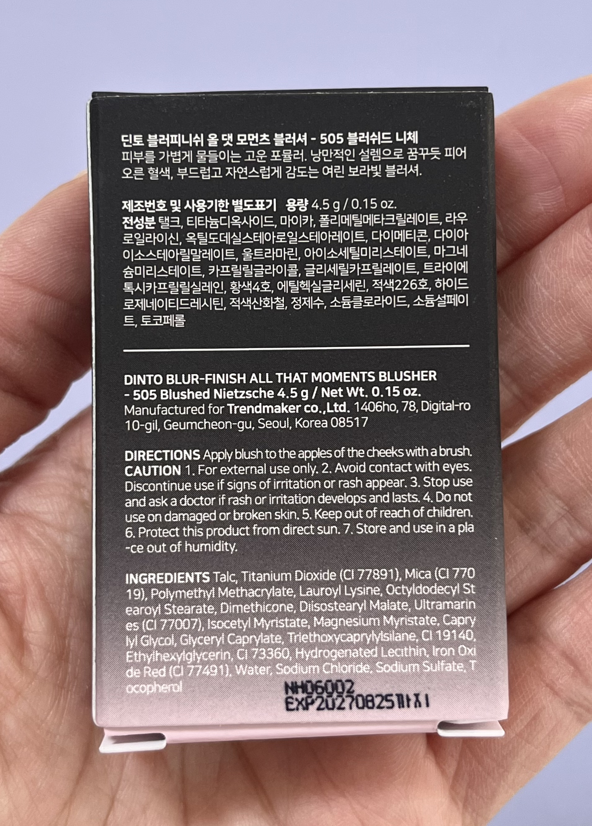 - フィニッシュパウダー乗せたようなふんわりしたと可憐な色合い ディントのチークは肌を軽く染めながら、ブラー効果で肌質をなめらかに演出します。 赤ちゃんのようにふわふわした肌表現ときれいな血色です。