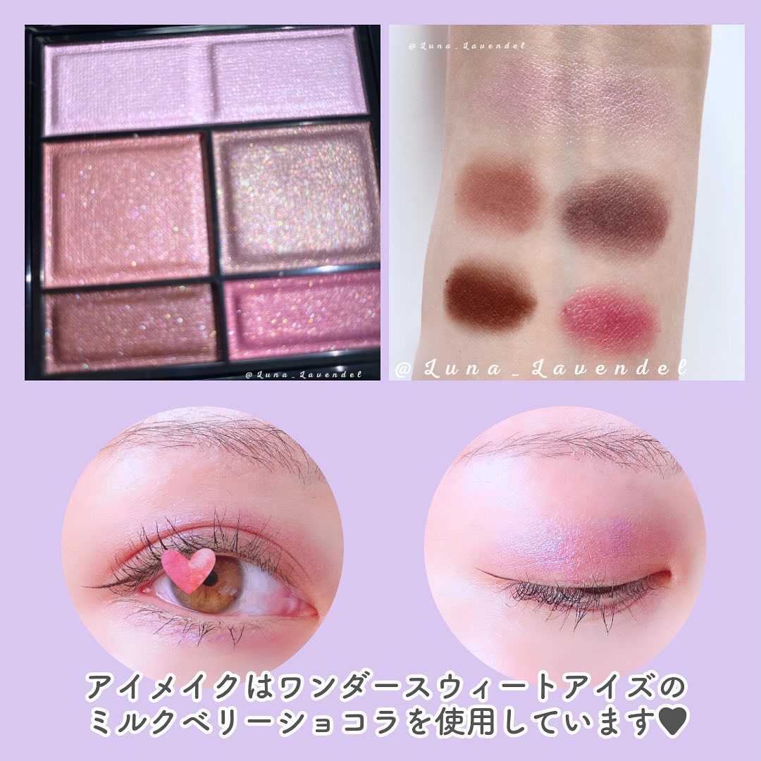 どの色も程度の違う白みを含んでふんわり発色が可愛い、まるで苺の砂糖菓子みたいなパレット。 湿度感のあるなめらかマットでむしろ似合う ✔右下のベージュピンクラメのベース使いでお砂糖感 キャンメイクならではの透け感発色で糖度が強くなりすぎず、8色入っているので使い方によってはエレガントにも。