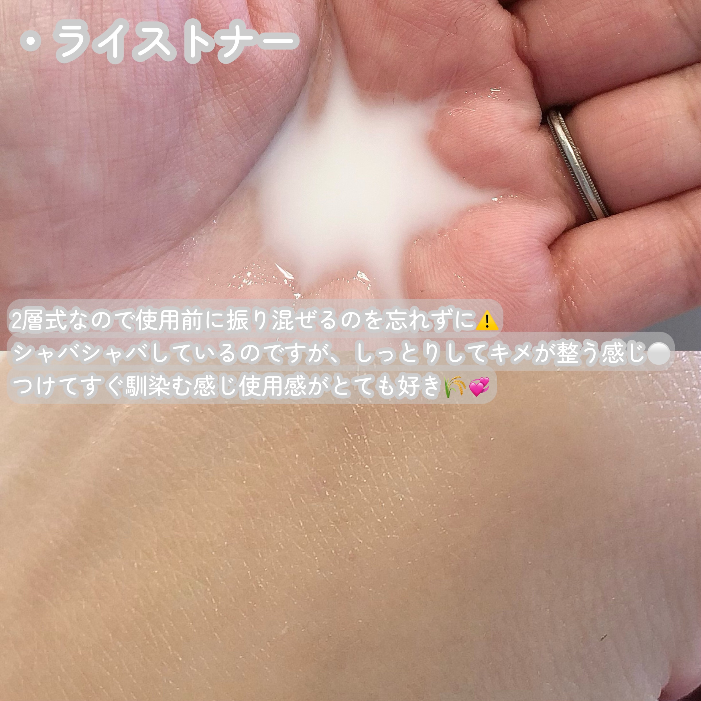 | シャバシャバしたテクスチャーで、重ね付けしても肌なじみが良いです。さっぱりとした使い心地。 | 詳細を見る | ||