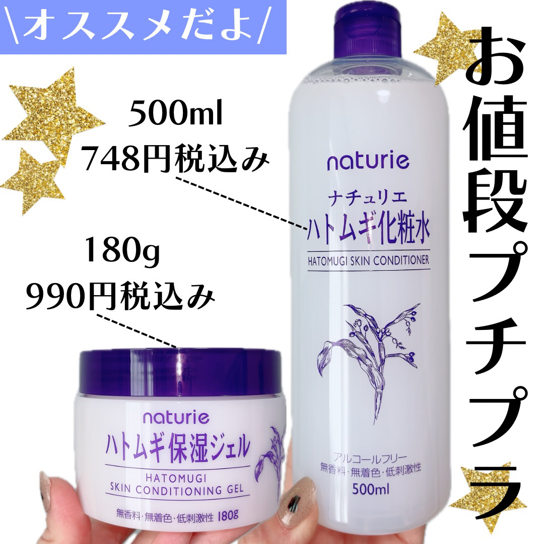 実は何度もリピートしているほど大好き! 特にハトムギ化粧水は長く愛用させていただいています。 みずみずしくてさっぱりする使用感がいいですよね。ニオイもないし、バシャバシャ惜しみなく使えるところも魅力! プチプラなのに大容量だから家族みんなで使うことができるし、顔やからだにたっぷりつけてもべたつかないところも使いやすくて好き。