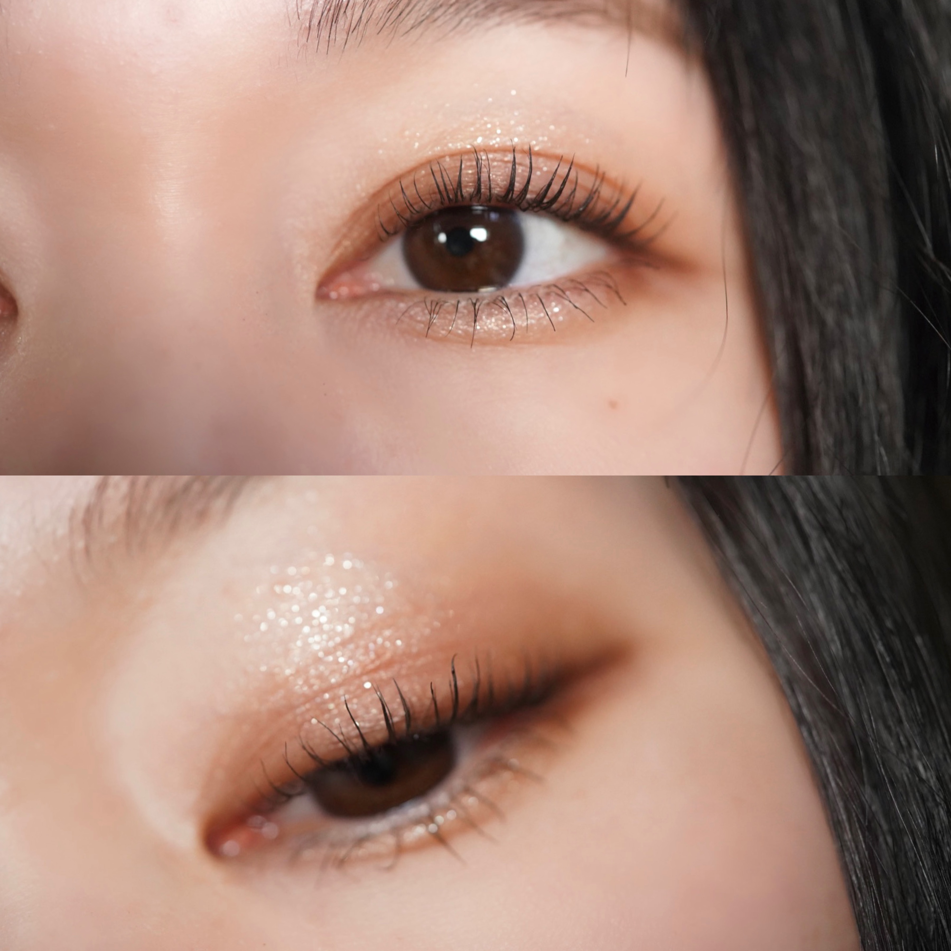 よくパレットのなかで明るいカラーをベースにまぶたに広く塗ることが多いのですが、パール感のあるカラーを避ける🙆♀️! パール感たっぷりの明るいカラーは涙袋に使うぐらい光を集めてぷっくり見せてくれるので、まぶたに広く使うと腫れぼったく見えがち😓 目元を明るくみせてくれたり、次に使うアイシャドウをぼかしやすくしてくれるけど、すっ飛ばしてメインのカラーを塗っちゃう✊🏻❤️🔥 涙袋にはたっぷり塗ってぷっくり見せる🙆♀️💕 シルキースフレアイズのマットタイプはすごく優れているな〜と感じました☺️💗 赤やオレンジなどは、入れすぎると腫れぼったく見えやすいので、見せたいカラーは下まぶた目尻にのせて色をたのしむ♡♡ パール感なしの透けマットだけじゃ物足りない… そう感じさせない華やかなラメが左上に入っているので黒目上と涙袋にのせるとすごく可愛い仕上がりに😍! 厄介な左右差のお陰でマットアイシャドウが好きになりました😌💕