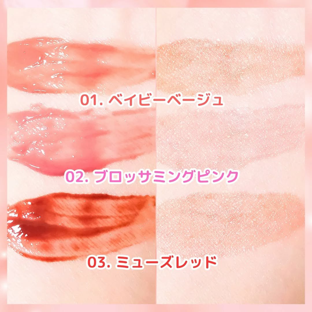 じゅわっとツヤがあふれてぷっくり仕上げ* 塗ったあとにツヤオイル膜が浮き上がる、ツヤUPテクノロジー✨️ リップティントの私的にこうだったらいいのにな〜って所が全て叶えられててめっっっちゃ好きでした😭💞💞💞 粘膜カラーで、白浮き無し、透明感あるちゅるんと感、おもたすぎないぷっくり唇😍😍😍 これ、、、数量限定なのー!?!! 公式みたら数量限定になってて、ぜひ定番化してほしいまじで好きすぎる😭😭😭😭