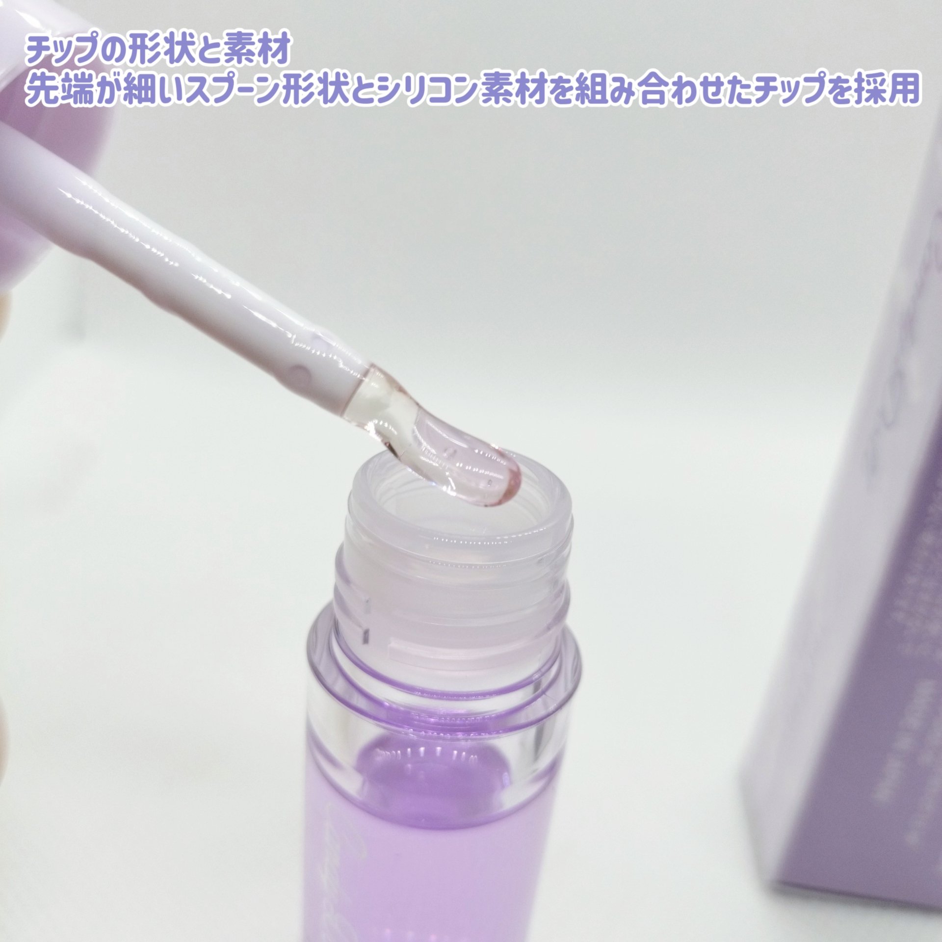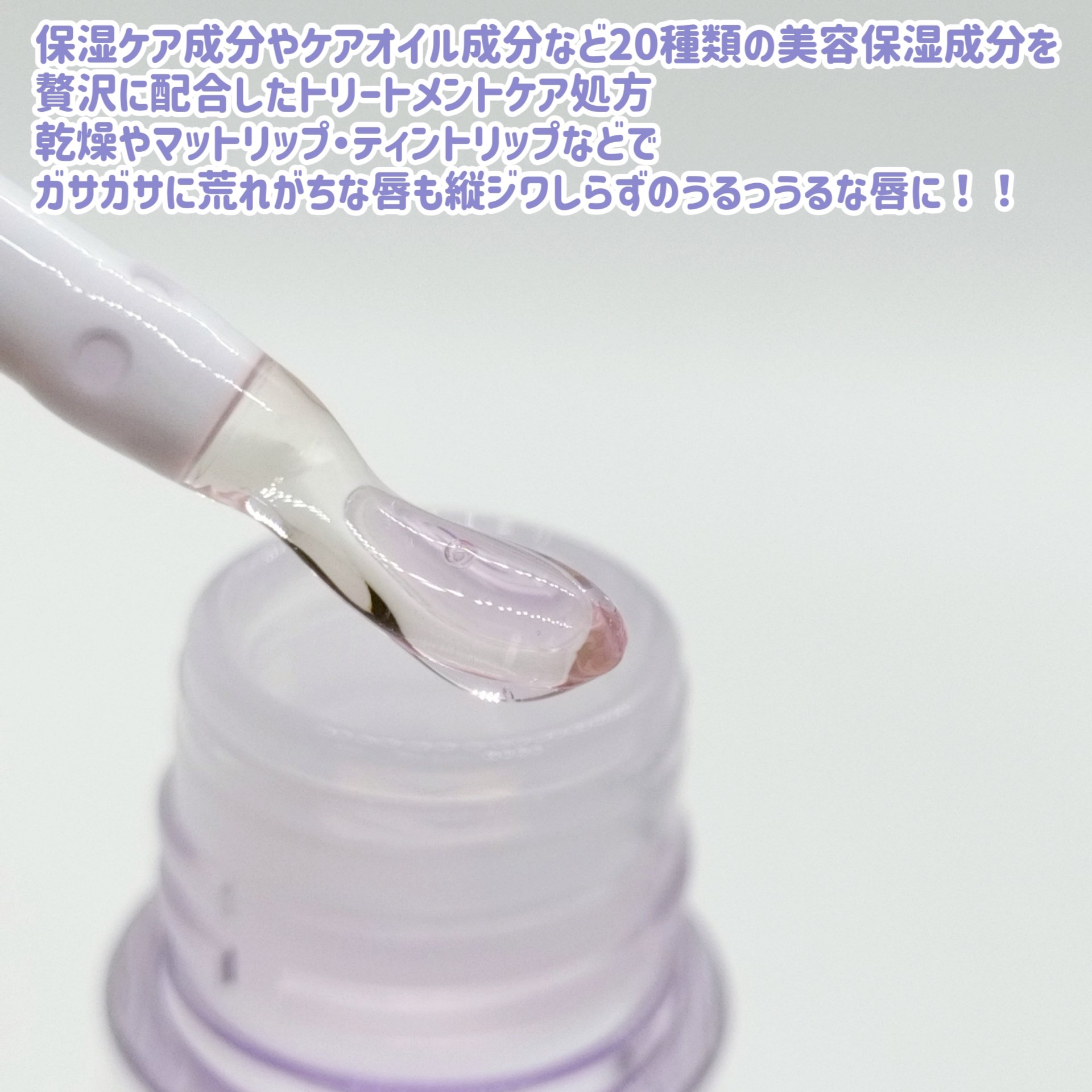 - 【WEB限定】 \1本5役!/ 唇の乾燥ケア・リップベース・リップグロス ボリューム感演出*・ナイトケアに 24Hいつでも集中保湿ケアでうるぷる唇が叶う #唇メンテグロス 【商品POINT】 ①トリートメントケア処方 唇に水分チャージ&ツヤとボリューム感をプラス*する 20種類の美容保湿成分と美容オイルをこだわりの比率で配合 べたつきのないもっちりとしたテクスチャーが唇をピタッとコーティングし集中保湿ケア ②クリアラベンダーカラー どんなリップにも合わせやすく 唇にほんのり透明感をプラスするクリアカラー ③唇にフィットするスプーン型シリコンチップ 先端が細いスプーン型形状とシリコン素材を組み合わせたチップを採用 適量を取りやすく細部まできれいに塗れて、使用後に拭き取ることで毎日清潔に使用できます *メーキャップ効果による
