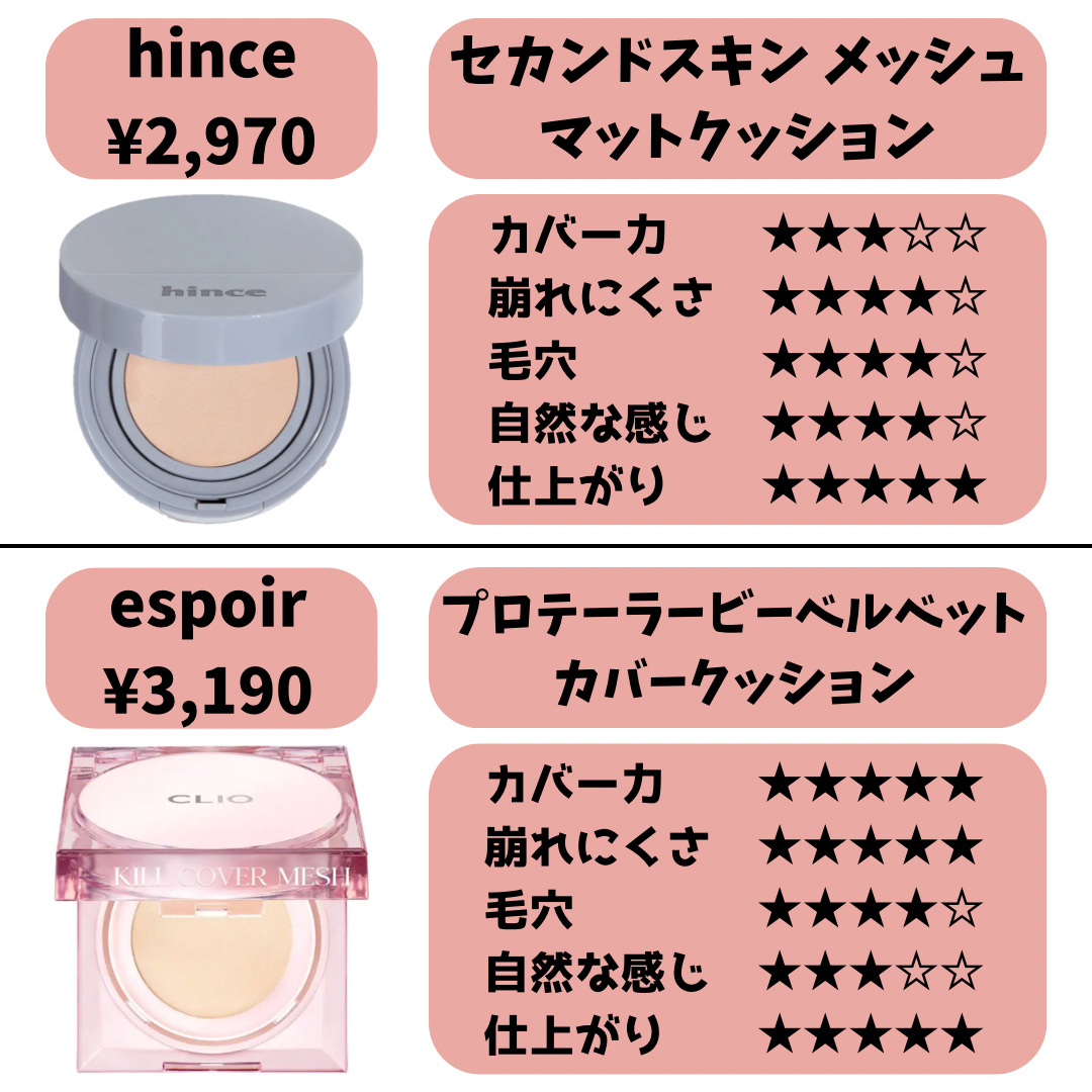 hince セカンドスキンメッシュマットクッション | 2,970円 |