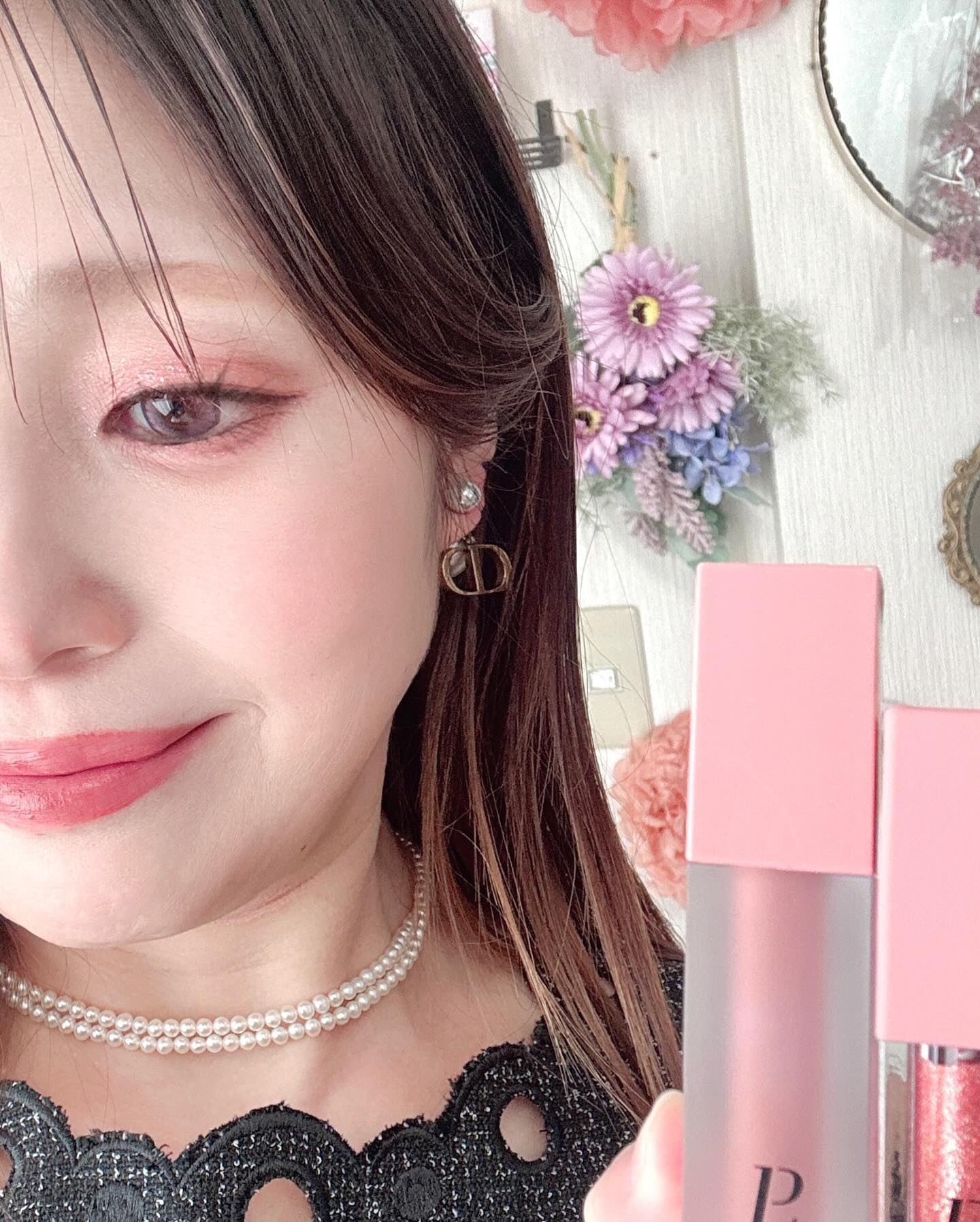 コーラルカラーで統一感のある華やかなメイクに🎨ˊ˗ 大小さまざまなラメで煌めく目元と話題の泥マットリップの組み合わせ.ᐟ.ᐟ リキッドアイシャドウは瞼全体にも、涙袋にポイントとして使ったりいろいろなメイクが楽しめるよ🙂↕️💞 マット質感でリップにもチークにもなる優れたアイテム🧸🎀 ͗ ͗