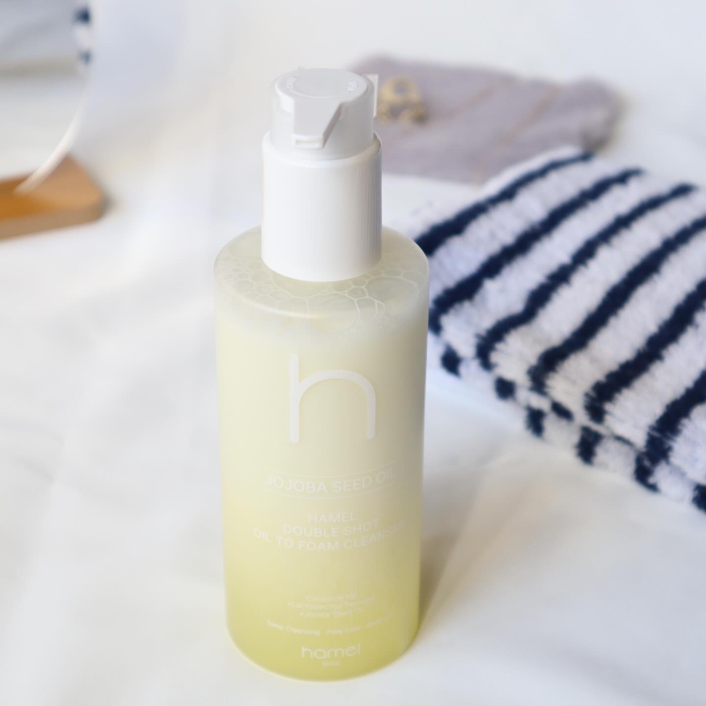 hamelのダブルショット オイル トゥ フォーム クレンザーです✨ オイルとアンプルを合わせたクレンジングで、うるおいを逃さずに洗えます🫧 ダブル洗顔は不要です🌷 乾燥する季節にもおすすめです🍂 Qoo10で購入可能です✨ ぜひチェックしてみてね☺️🌷