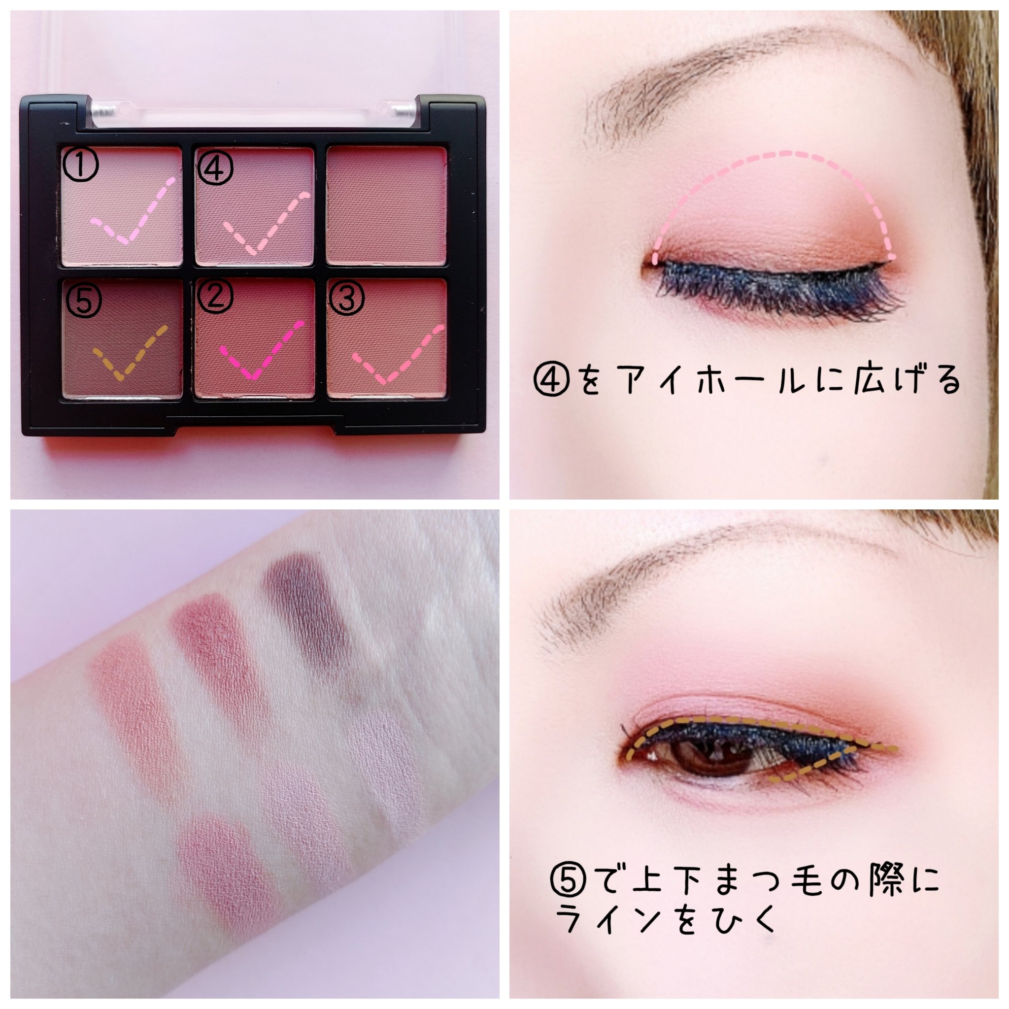 プチプラのクオリティじゃないっ!! 発売前からチェックしていたけれど、ここまで可愛いとは…😆 絶妙カラーで目もとのくすみを飛ばして*明るい印象に🩷 横割りグラデーションでメイクし、立体感をより出したかったので最後に1番左のカラーを上まぶたの真ん中と涙袋にのせています🙆 肌馴染みも良くて粉飛びも感じにくかったです💕 ブラウンの方も店頭に出てたら買おうかな💓