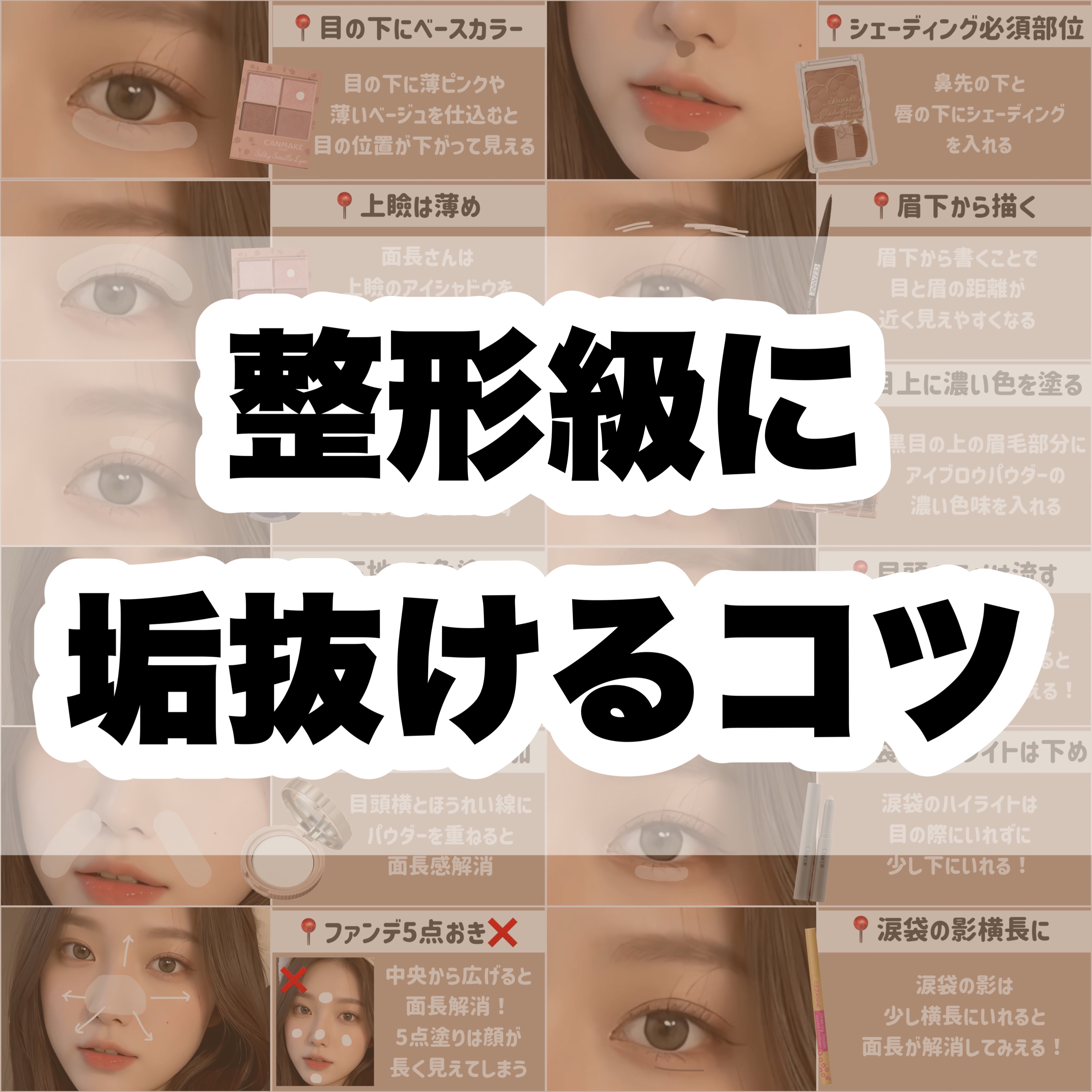 面長を解消したい人向け! 中顔面短縮メイクテク8選です🙌🏻📝 中顔面とは❔ 目の下(涙袋は含まない)から唇の真ん中(口角)までの長さのことです! 「6.5cm」以上だと長めになります📏