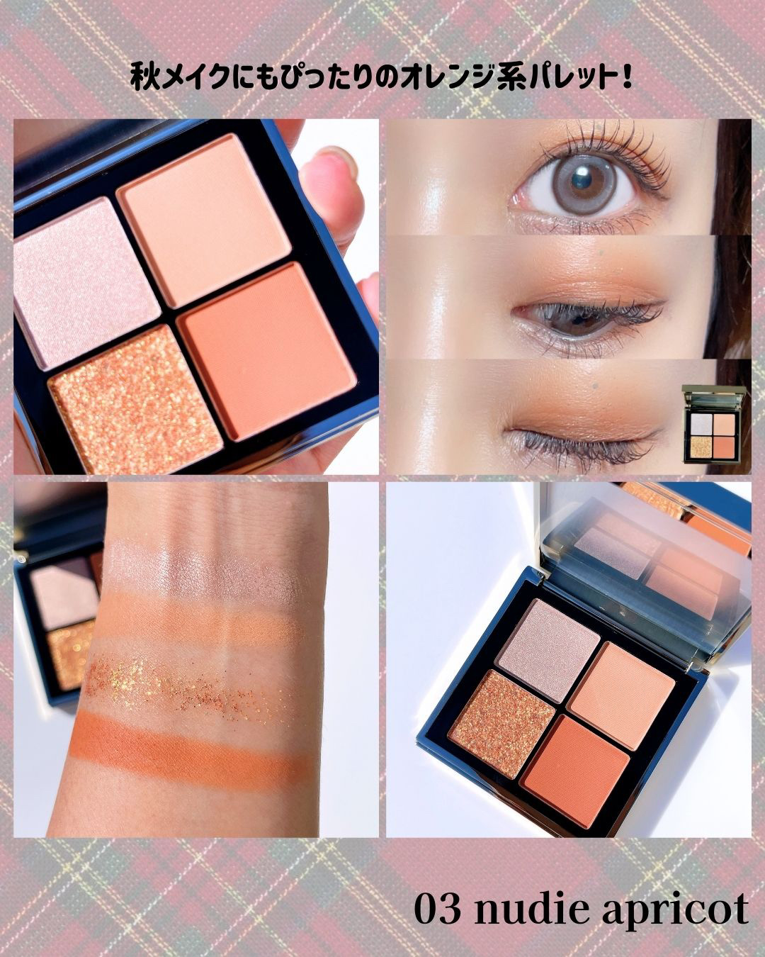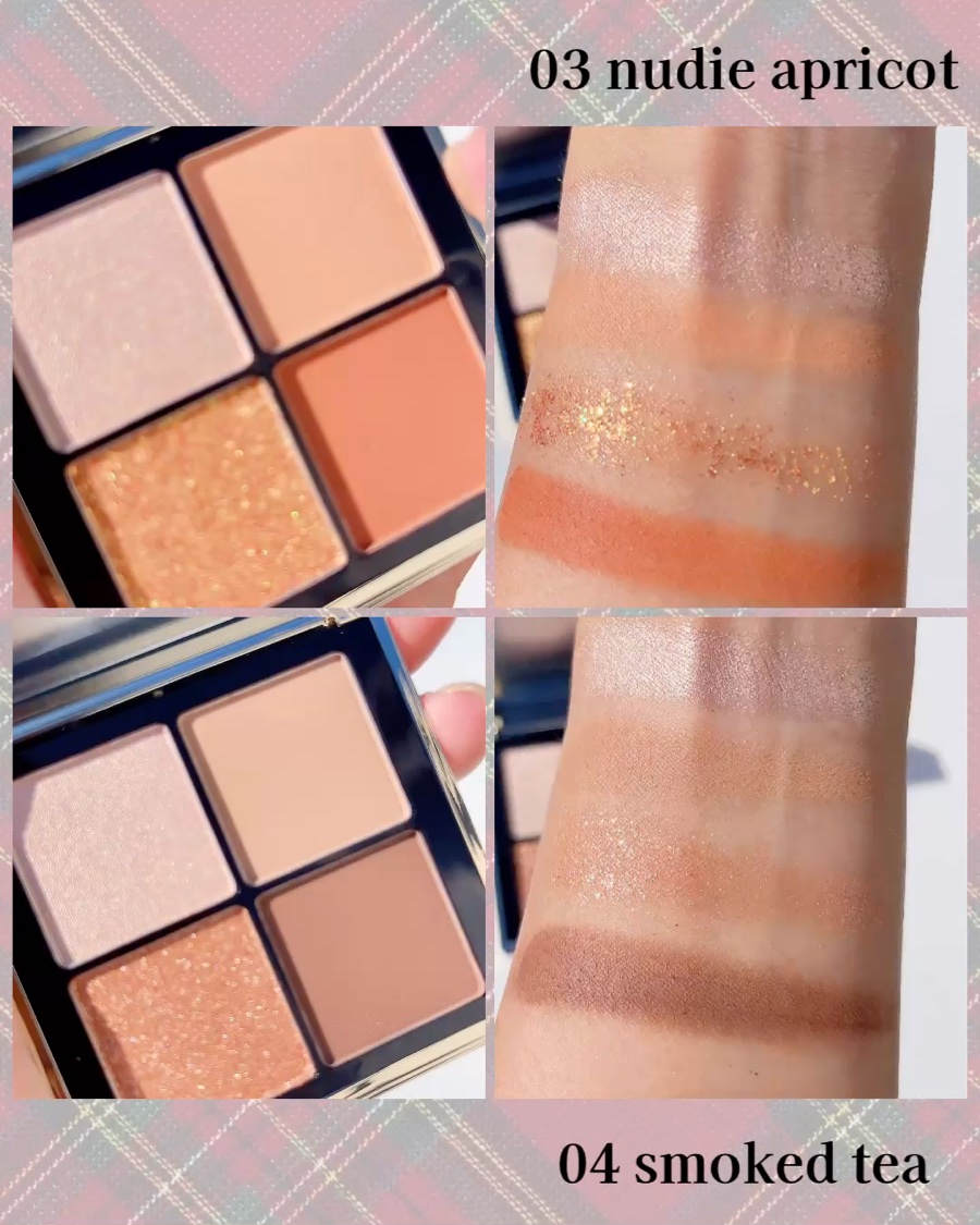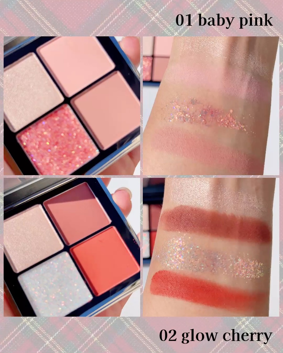 #PR❤︎4色アイシャドウパレット提供:MOKAJapan-cosmetics-❤︎01babypink❤︎02glowcherry❤︎03nudieapricot❤︎04smokedtea(各2,300円)マットカラー2色、グリッター1色、...