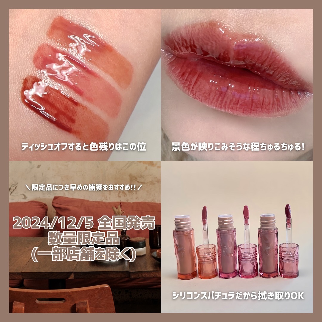 ぷっくりちゅるんとした仕上がりが可愛いエテュセの新作ティントを全色レビュー。塗った後にだんだんツヤオイル膜が浮き上がって、じゅわっとツヤがあふれる! リップフィラー級のぷっくり仕上がりが可愛いティントリップです。美容オイル配合でうるおって乾燥しにくく感じました✨ 波打つような可愛いパケはコンパクトで持ち運びにも◎。カラーは普段使いしやすい粘膜系全3色💁🏼♀️